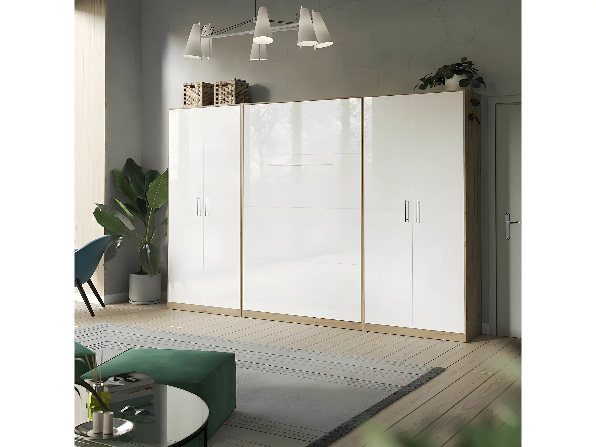 Lit escamotable +2 Placards Vertical 140x200+(80x2)cm Lit Rabattable Lit Mural Standard Chêne Sauvage/blanc brillant