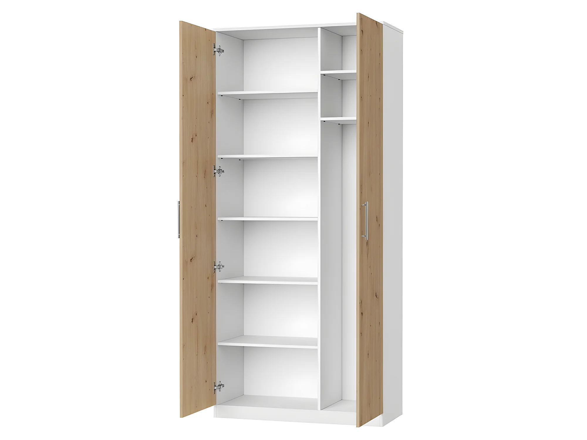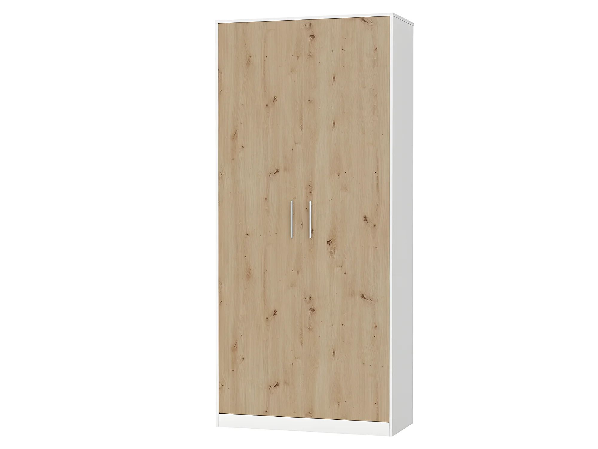 Lit escamotable +2 Placards Vertical 90x200+(80x2)cm Lit Rabattable Lit Mural Standard Blanc/Chêne Sauvage