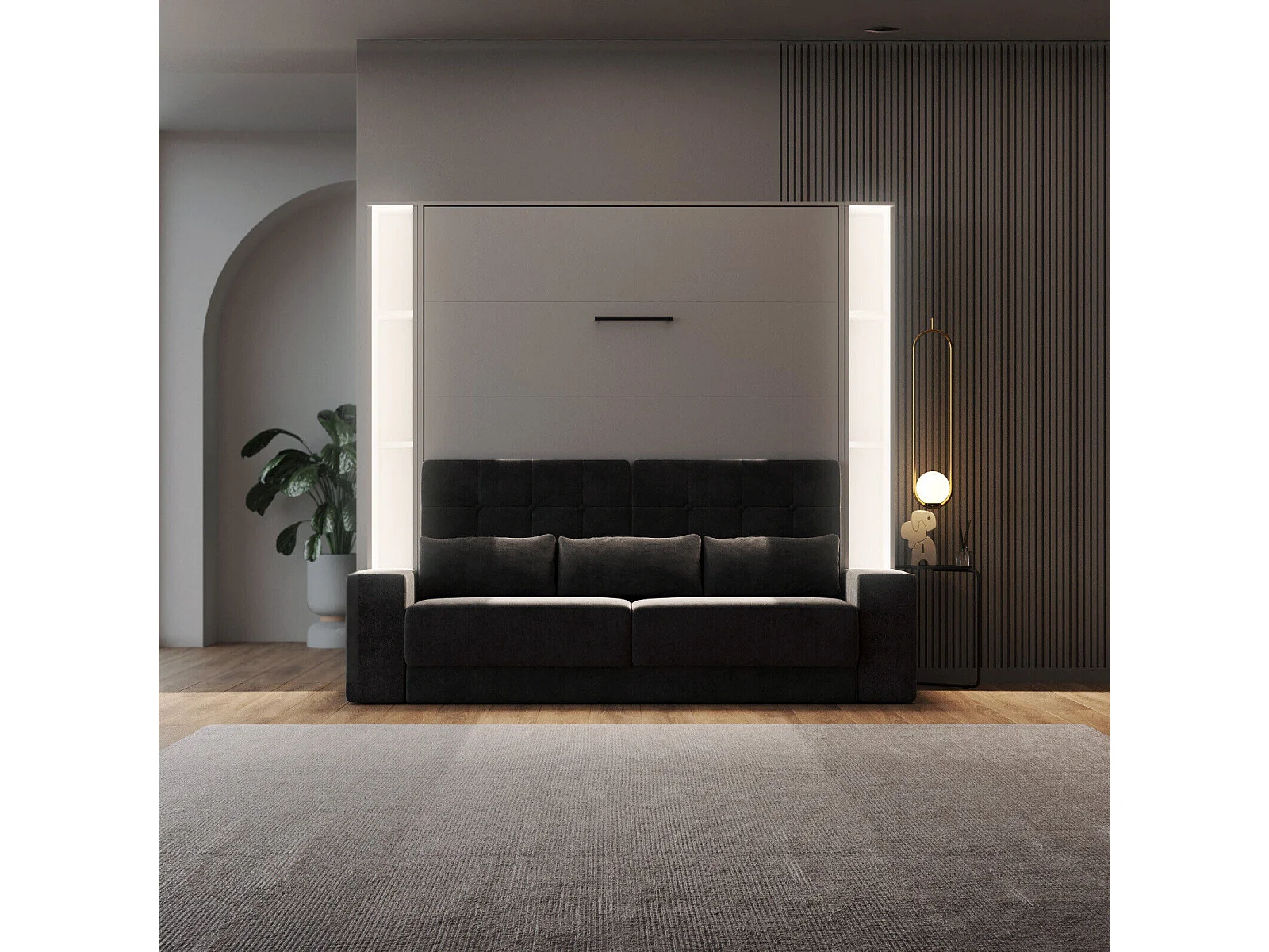 Lit escamotable ensemble 2 placards étagère et canapé 180x200cm Lit Mural Gris perle inc.LED