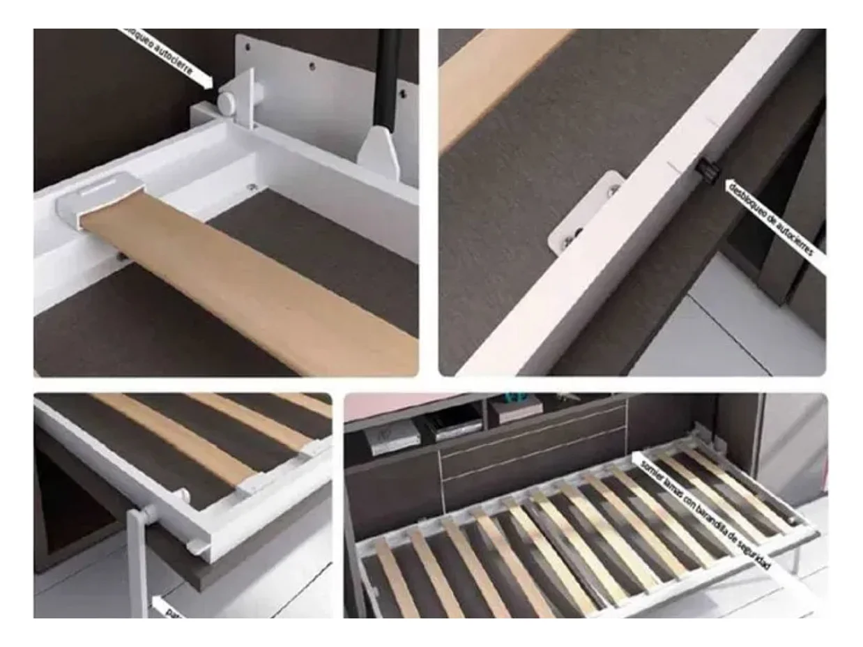 Lit escamotable horizontal avec canapé VETAL-105x190-Canapé Gris foncé-Structure Chêne clair