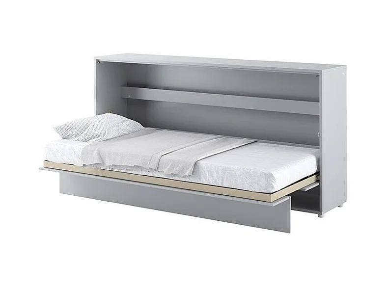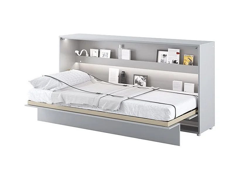 Lit escamotable horizontal avec étagères gris mat Noby 90x200-