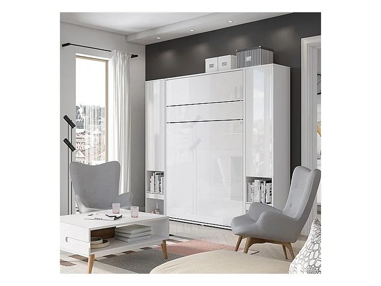 Lit escamotable vertical avec étagères blanc brillant Noby 160x200-Avec matelas