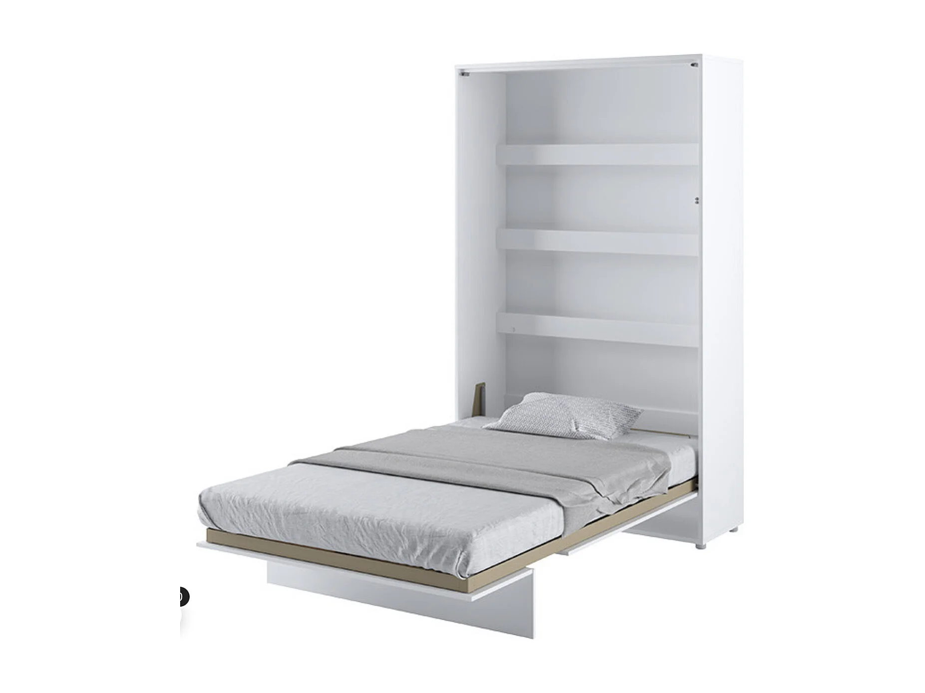 Lit escamotable vertical avec étagères blanc brillant Noby 90x200-Avec Led et 2 veilleuses