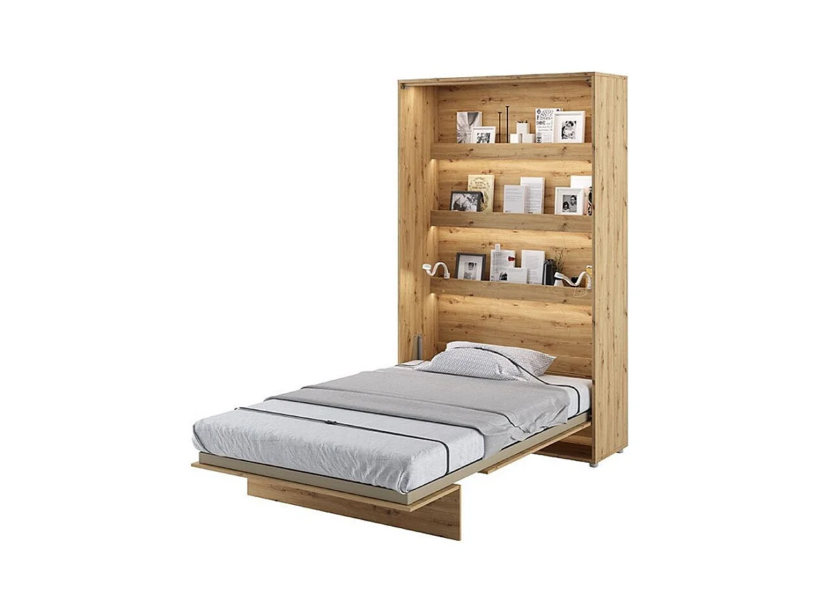Lit escamotable vertical avec étagères chêne artisan Noby 90x200-Avec matelas