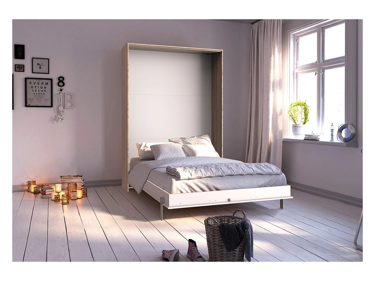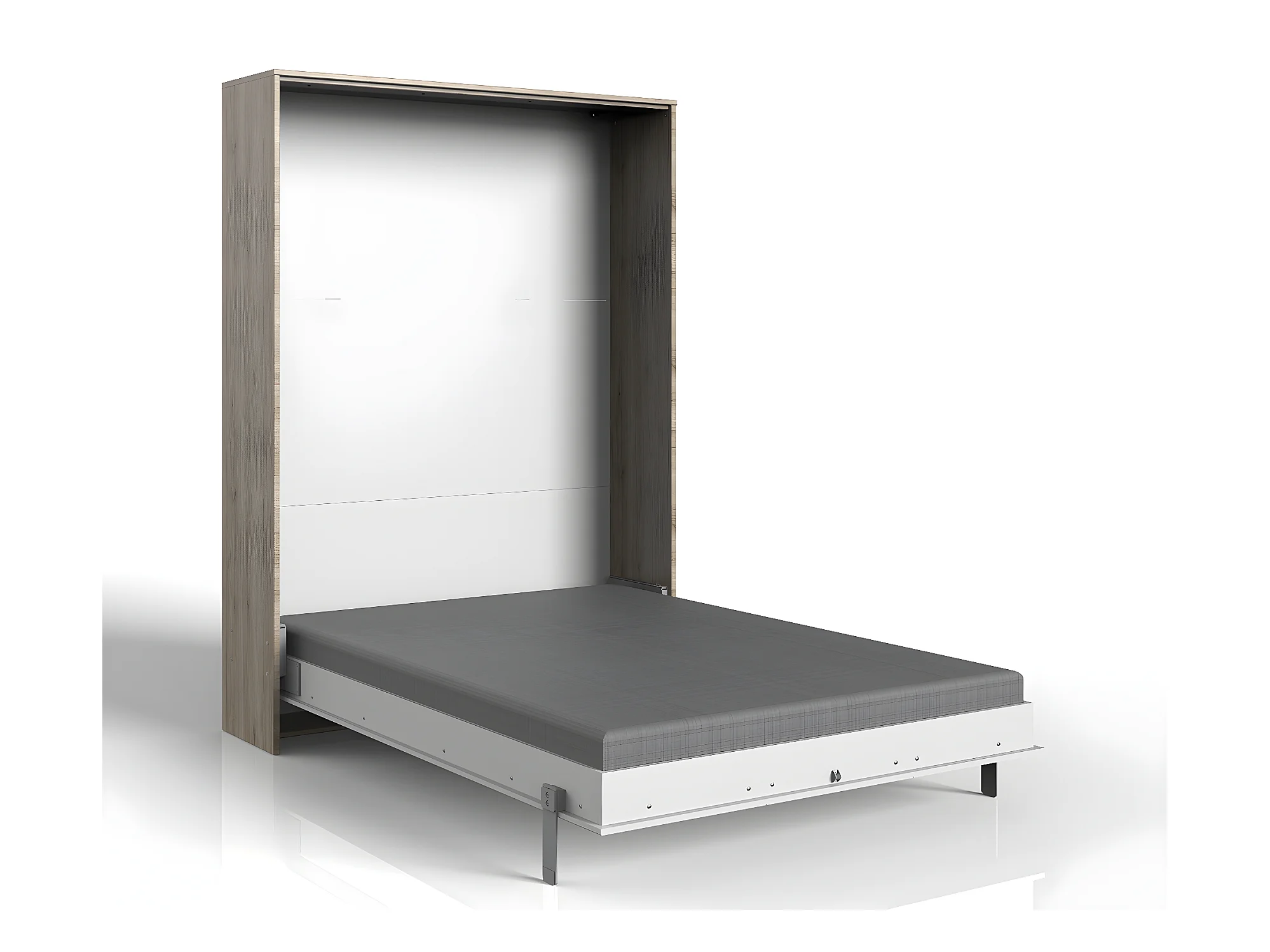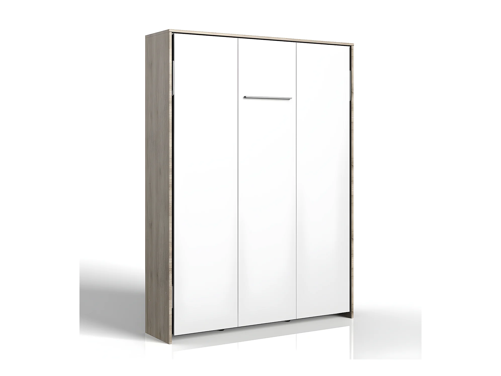 Lit escamotable vertical coloris blanc/imitation chêne - L. 152 x H. 213 x P. 43-217 cm