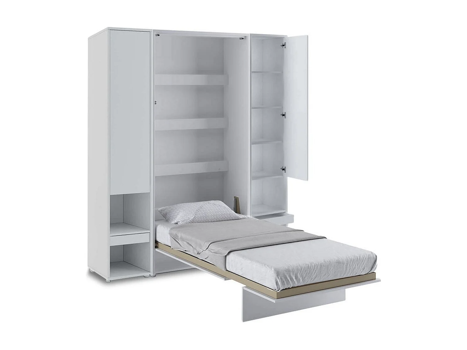 Lit escamotable vertical gris mat avec 2 armoires de rangement Noby-Avec Led-160x200