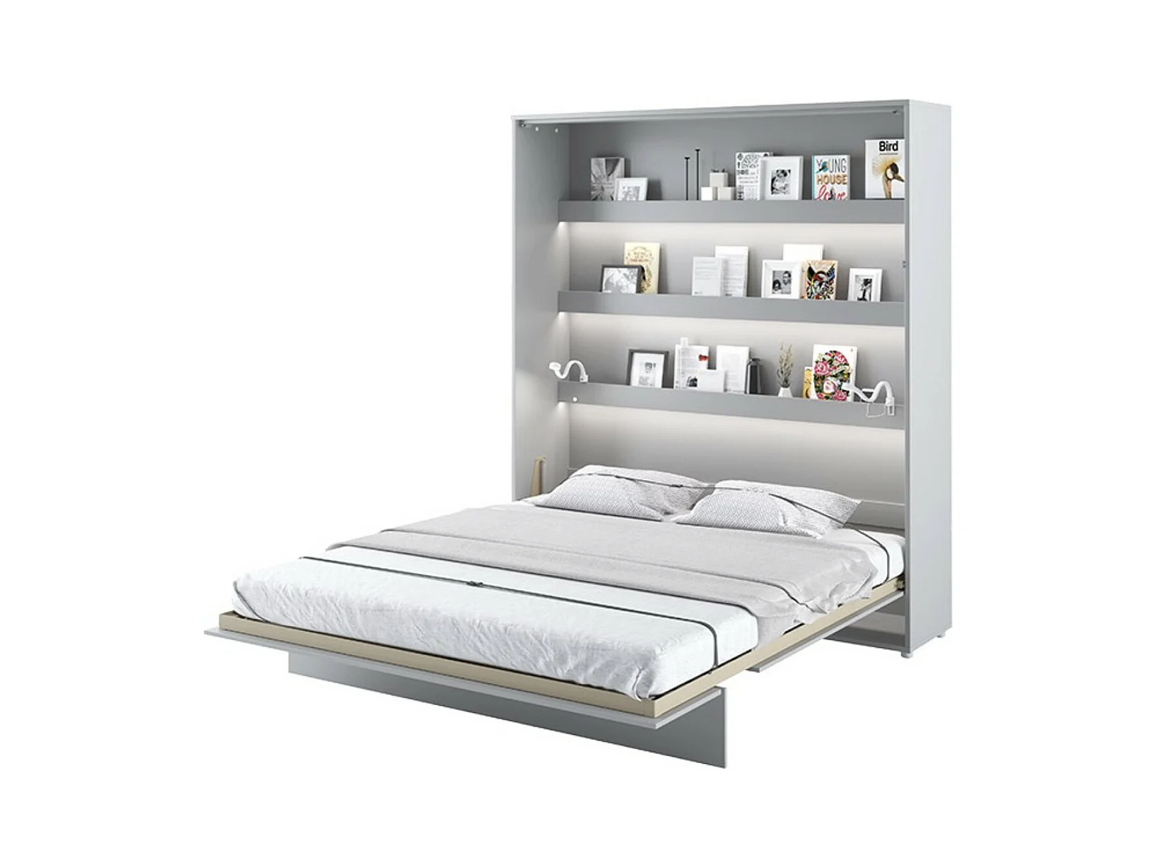 Lit escamotable vertical gris mat avec 2 armoires de rangement Noby-Avec Led-180x200