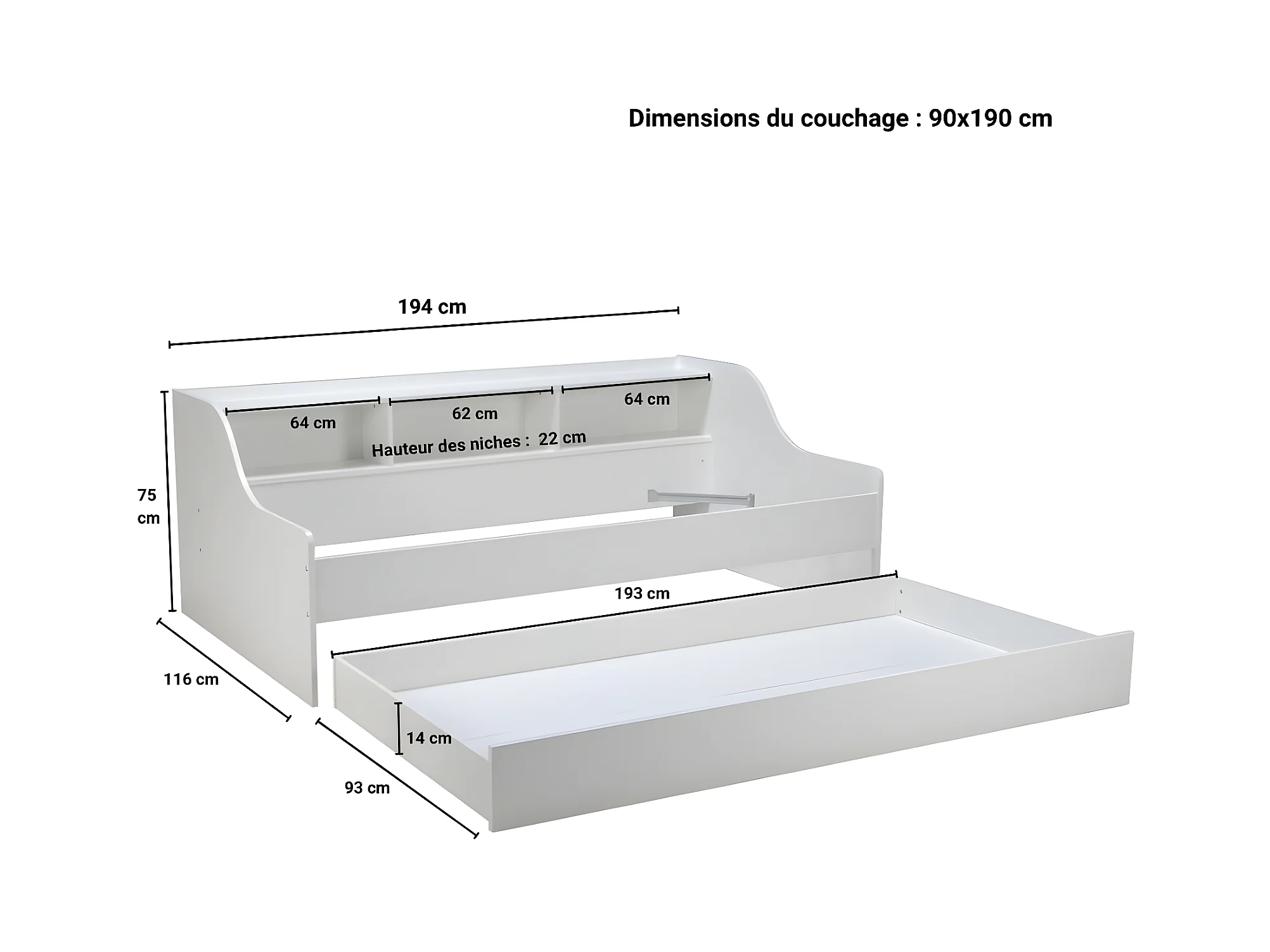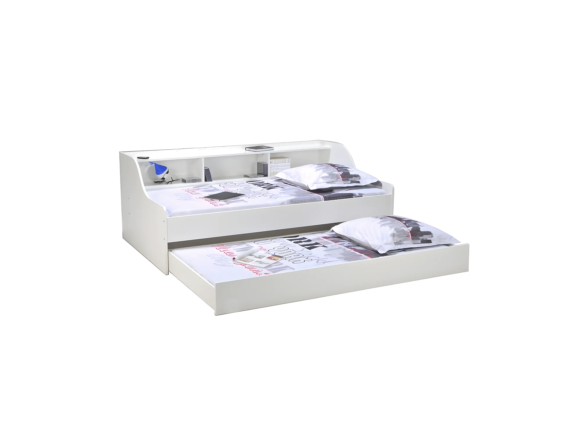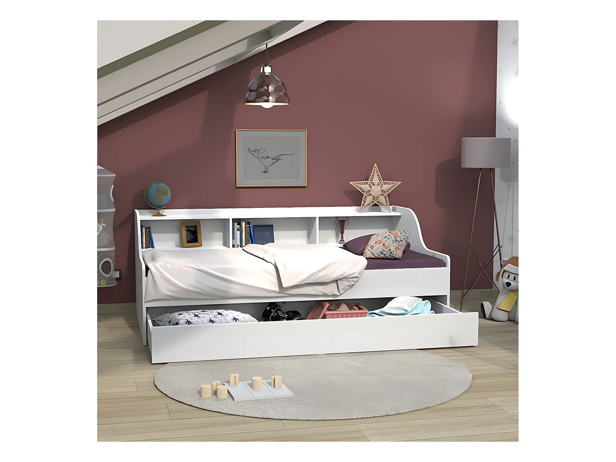 Lit PALMA 90x190 + étagère + 1 tiroir-lit / Blanc