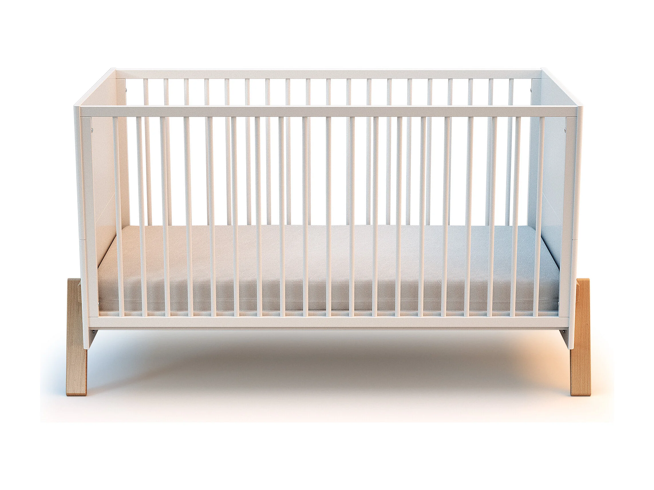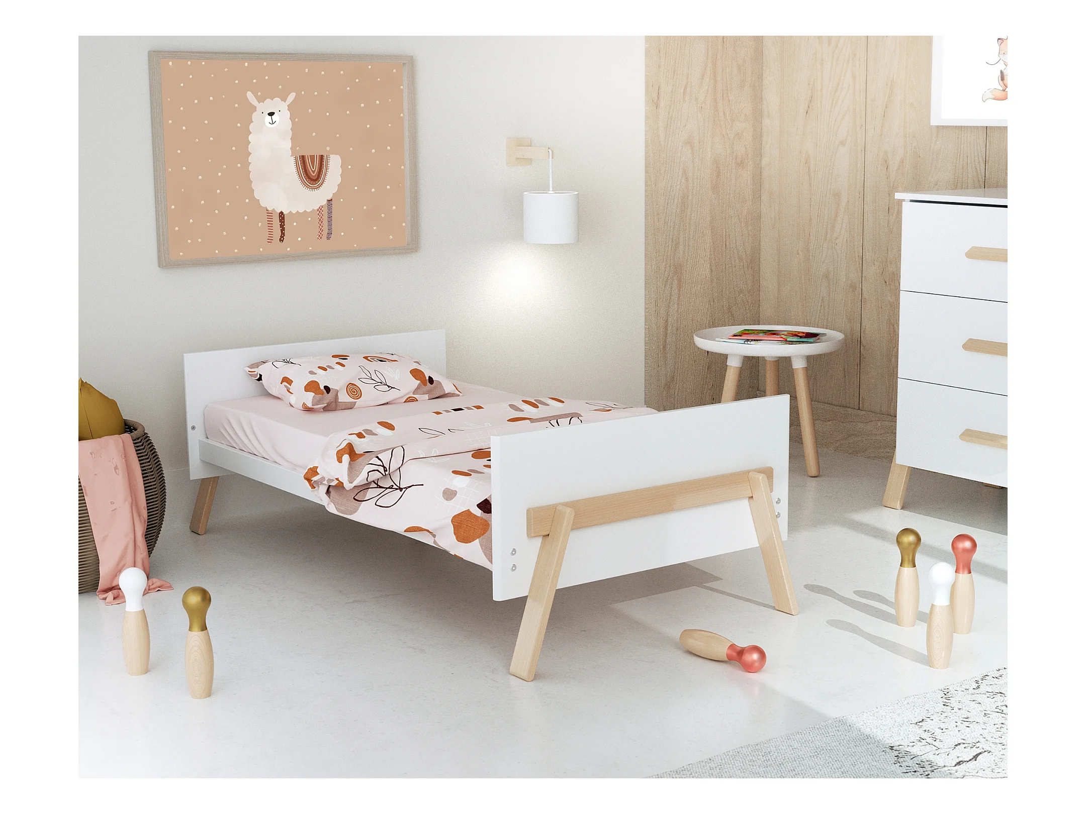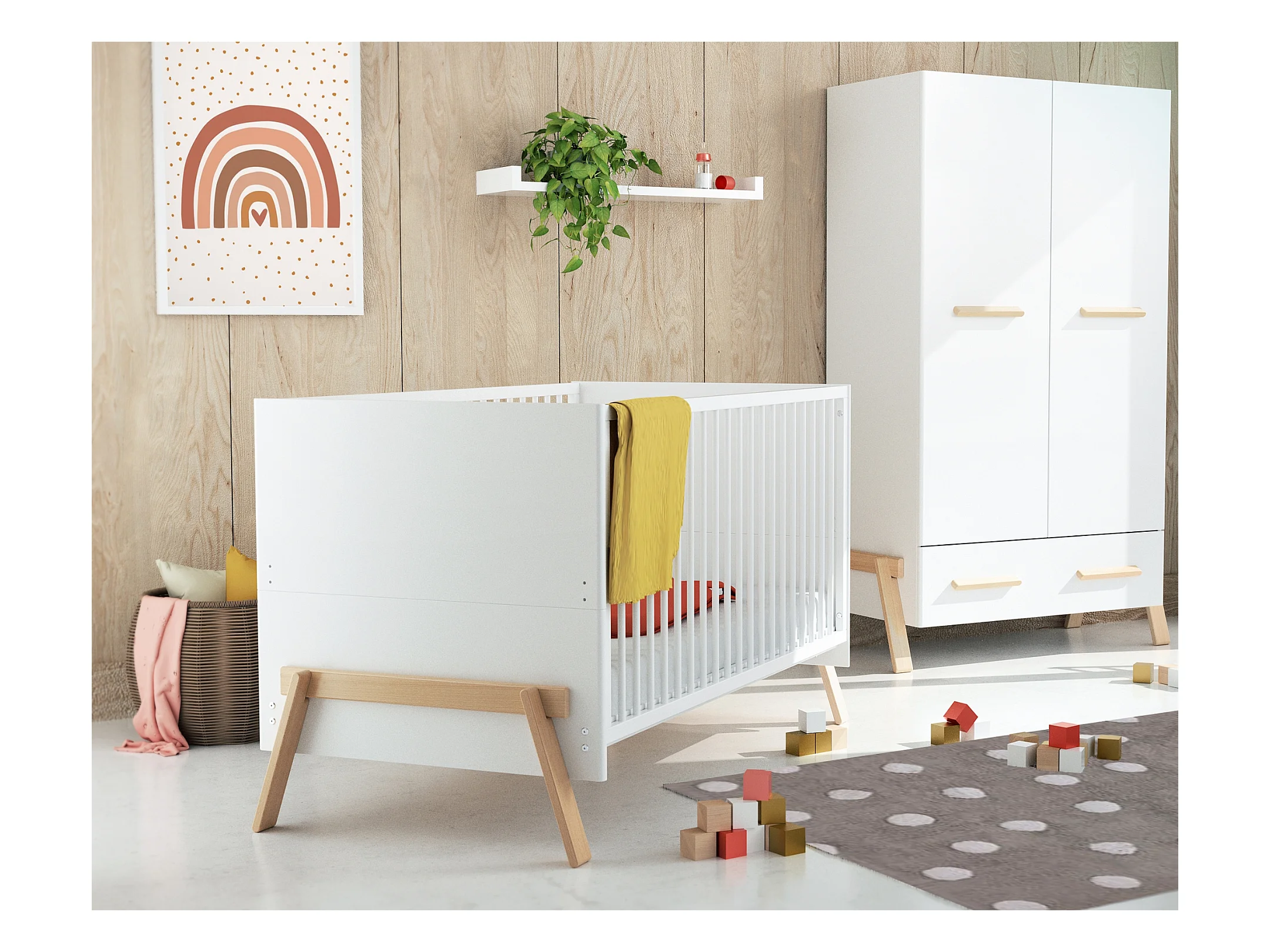 Lit bébé évolutif en bois CANAILLE Blanc et Hêtre Verni 70 x 140 cm