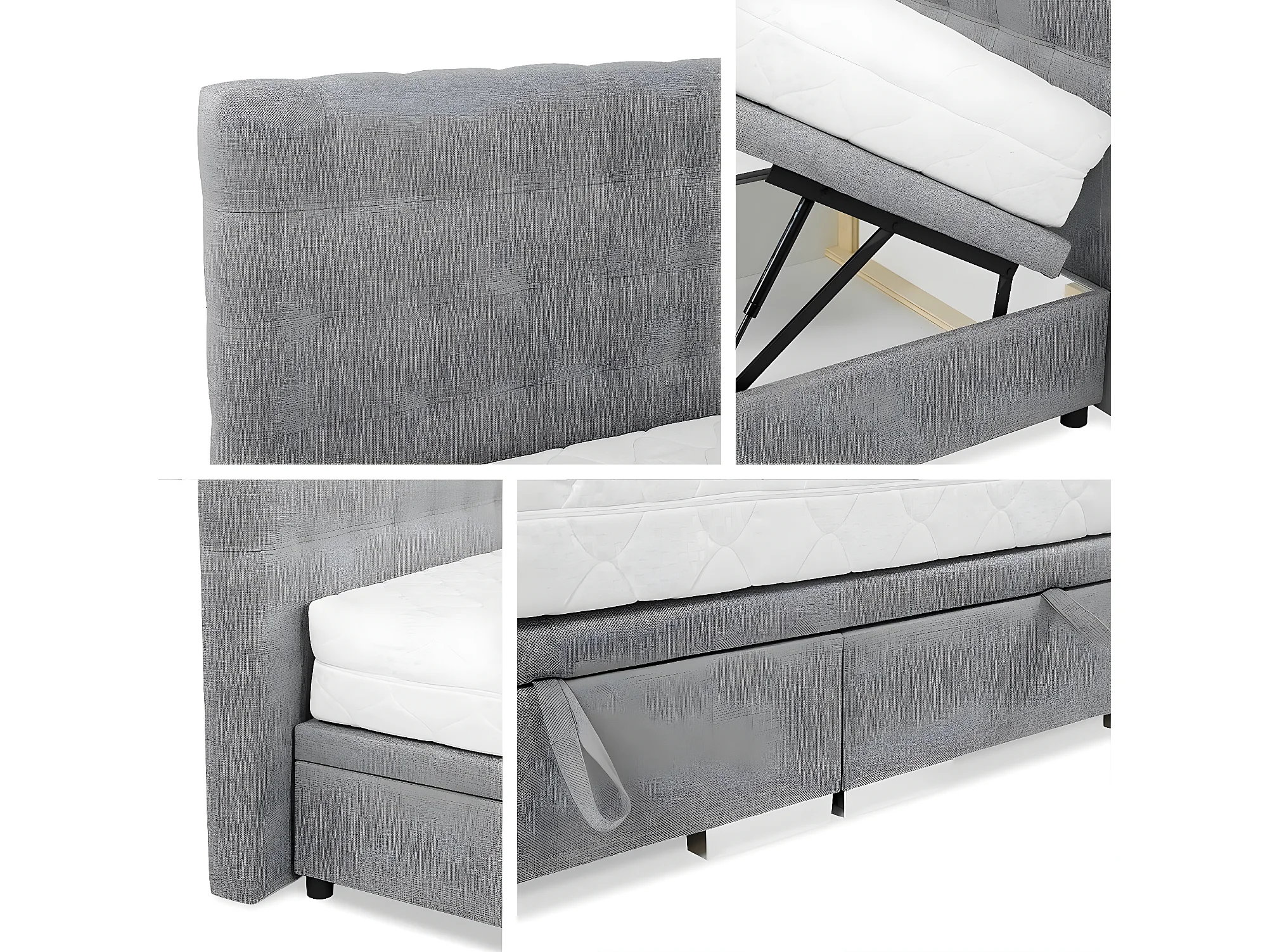 Lit Florence 107, Double, Gris, Tapisserie, Sommier à lattes, 160x214x109cm