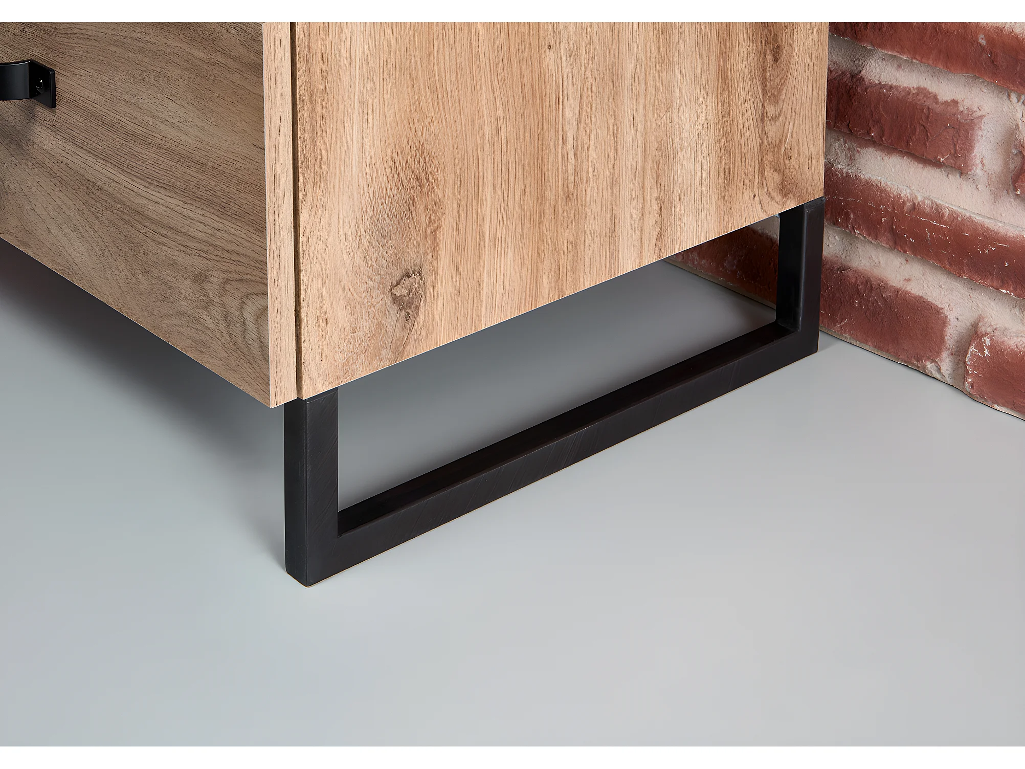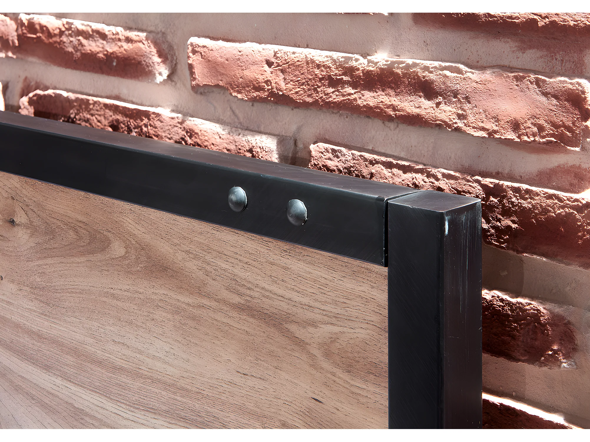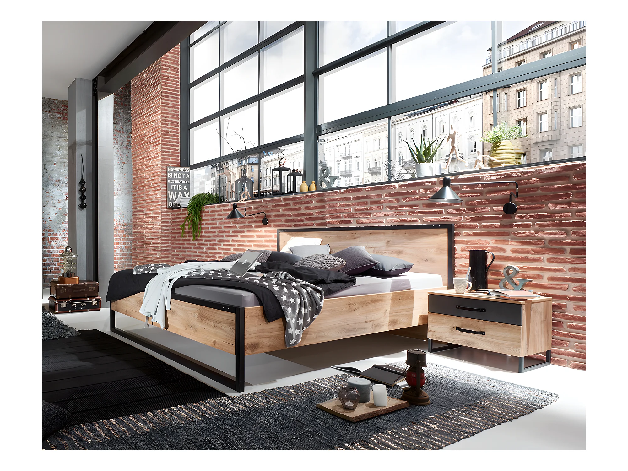 Lit futon adulte et 2 chevets Imitation chêne poutre rechampis raw steel - 180 x 200 cm