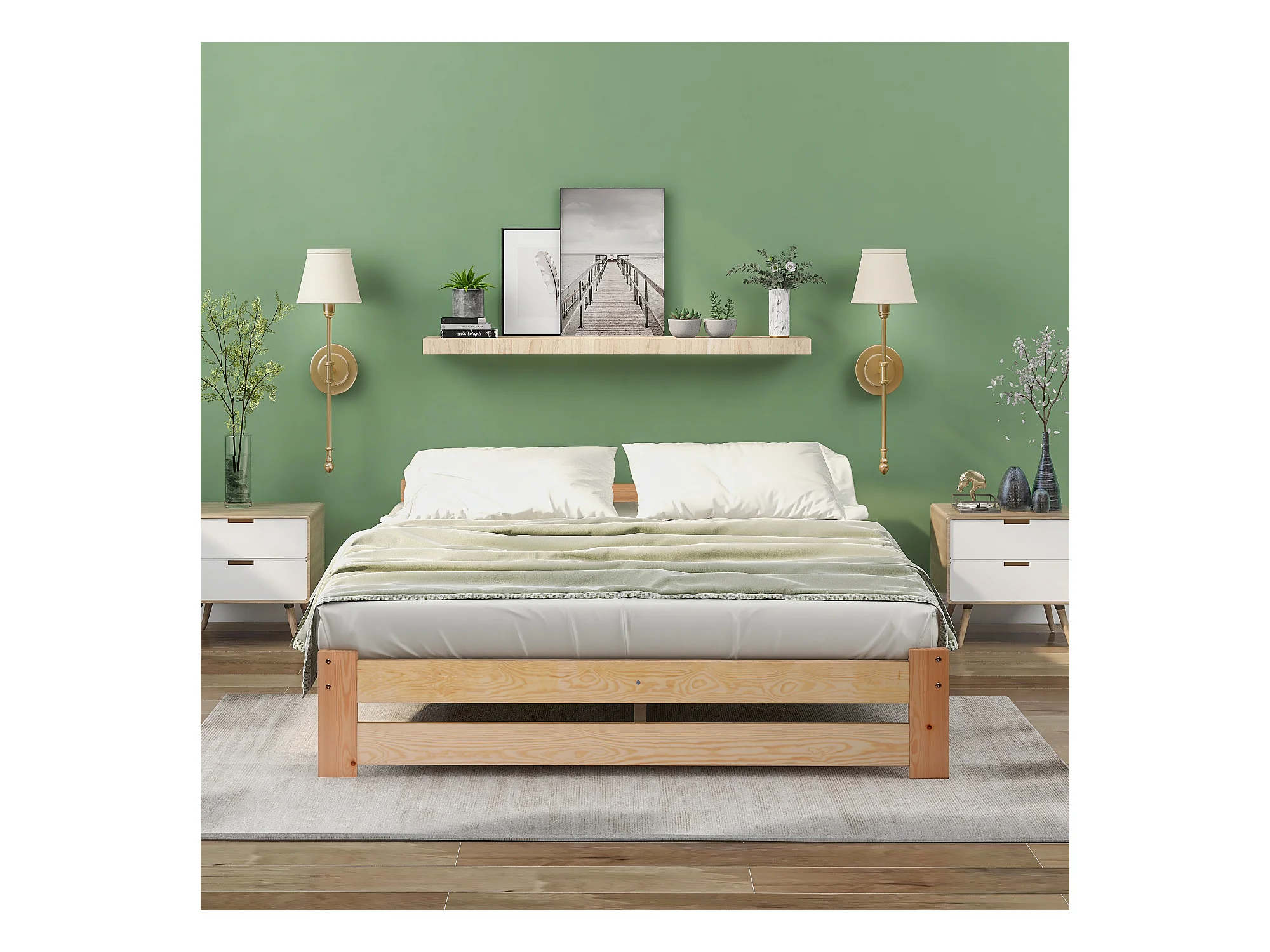 Lit Futon en bois massif avec tête de lit, naturel (200x140 cm)