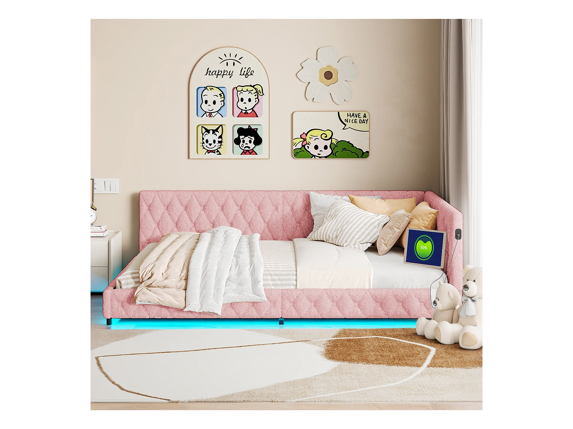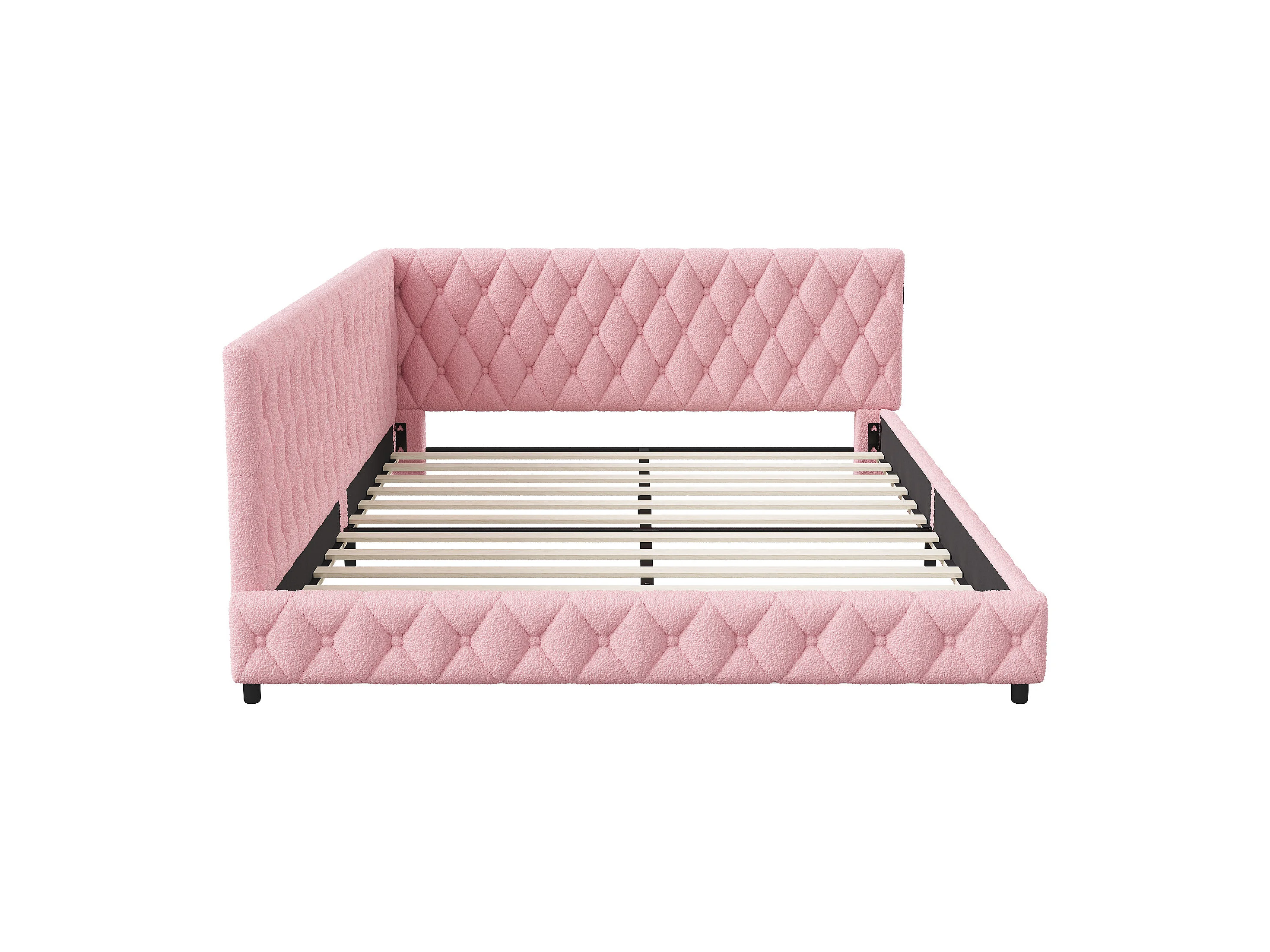 Lit gigogne 140x200 cm - Teddy velours, Canapé lit convertible avec éclairage LED et recharge USB, - ROSE