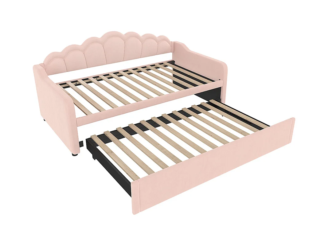 Lit gigogne 90/180x200 cm canapé-lit velours bande LED à couleurs changeantes rose