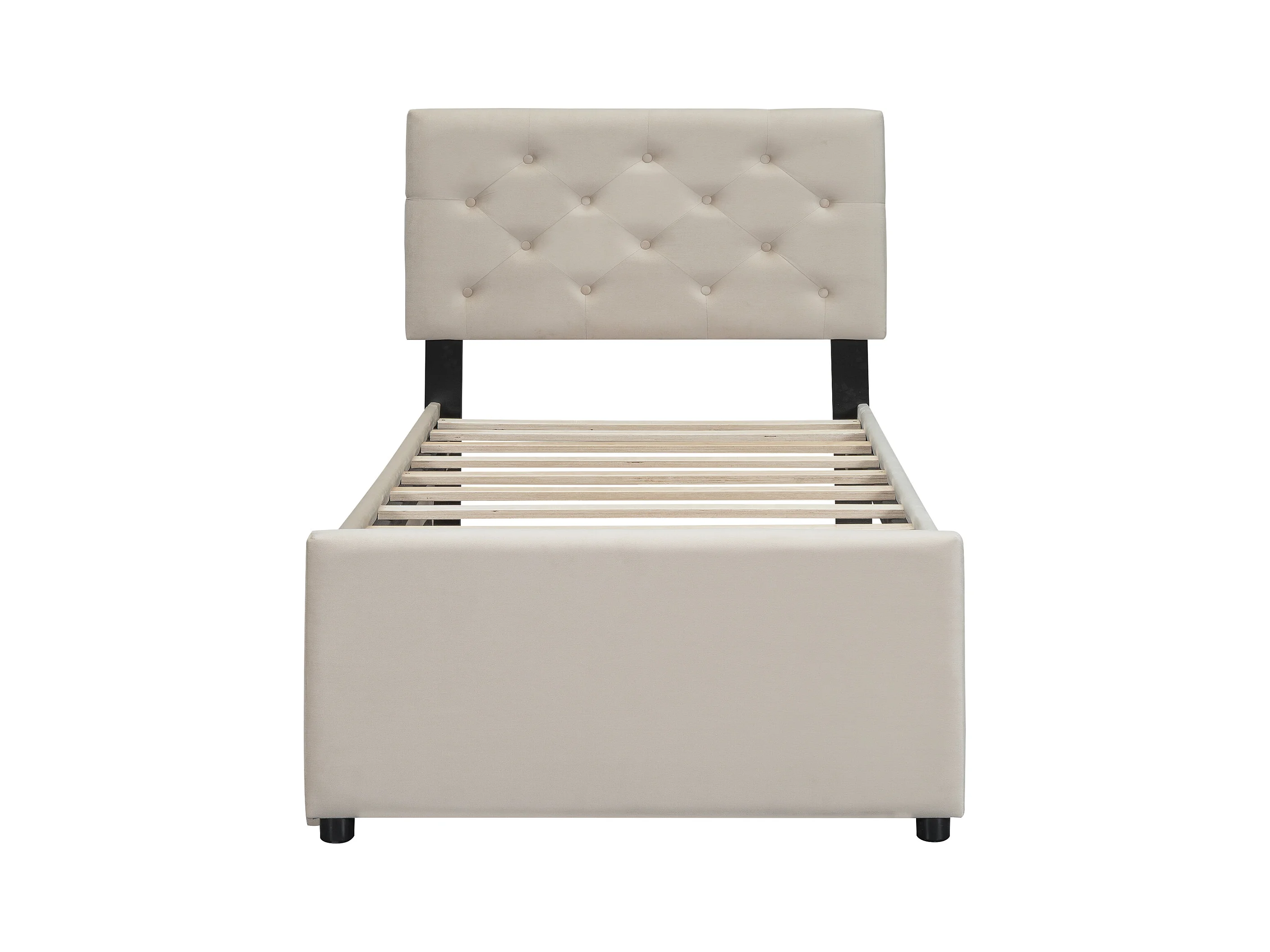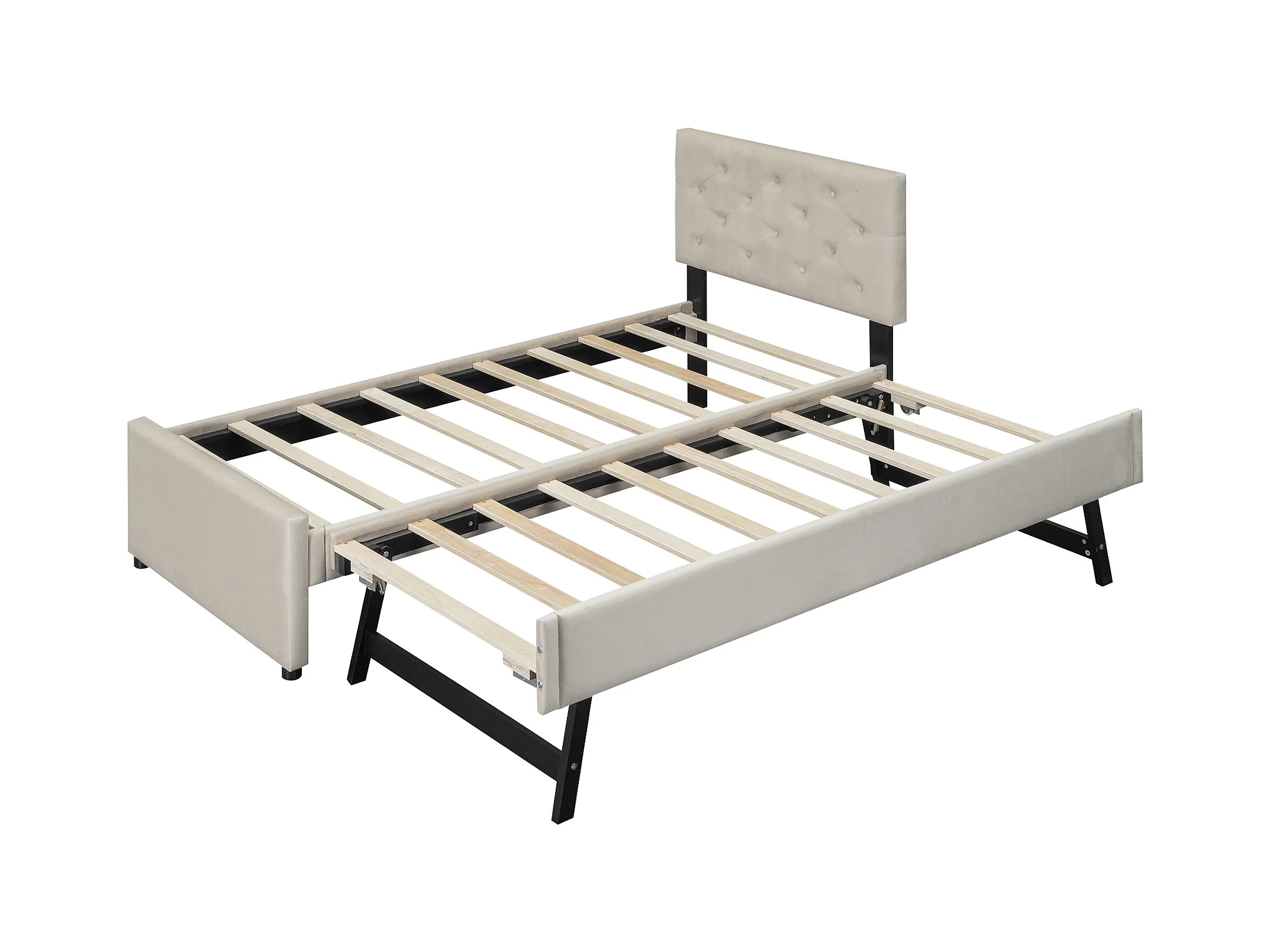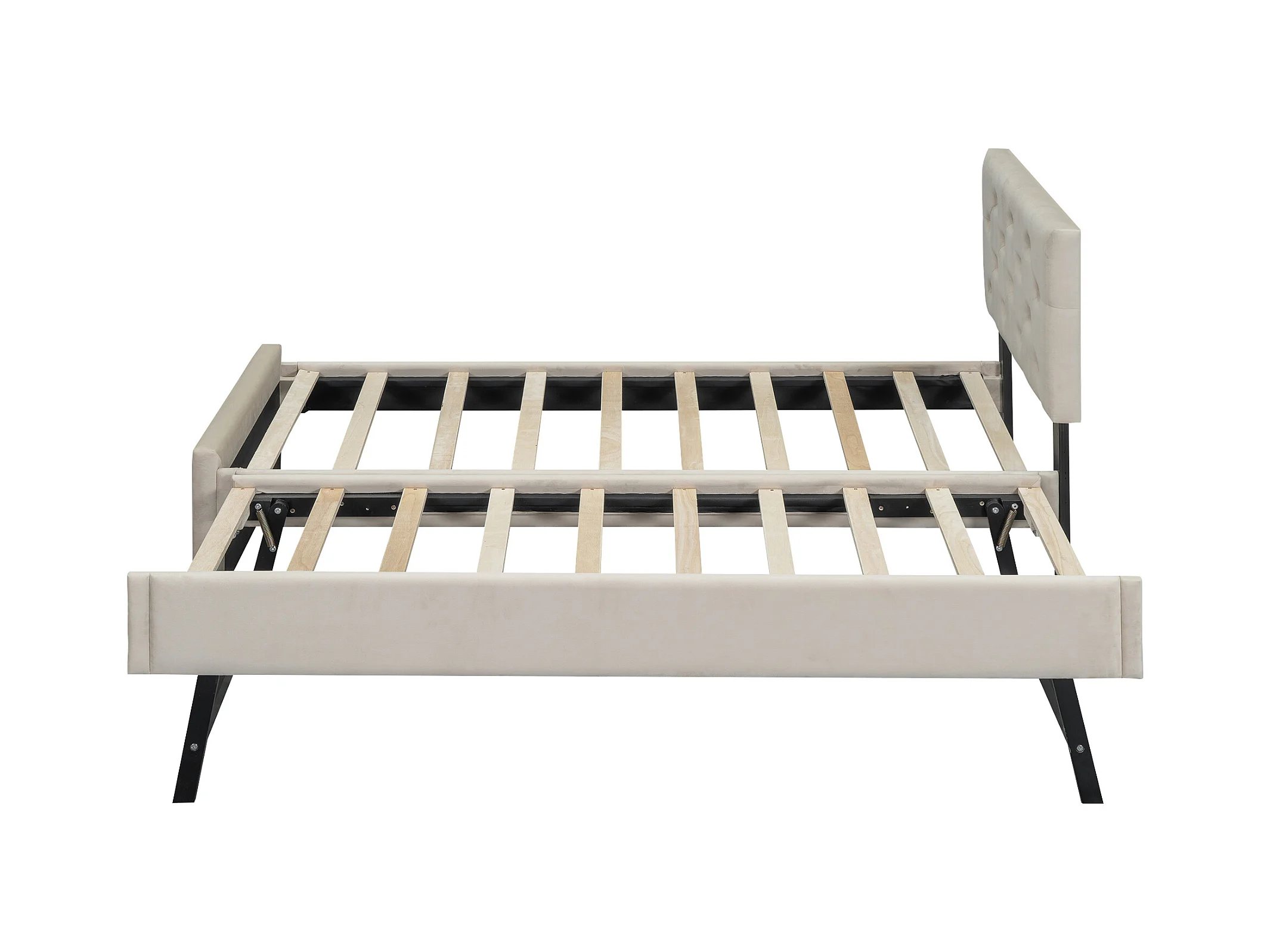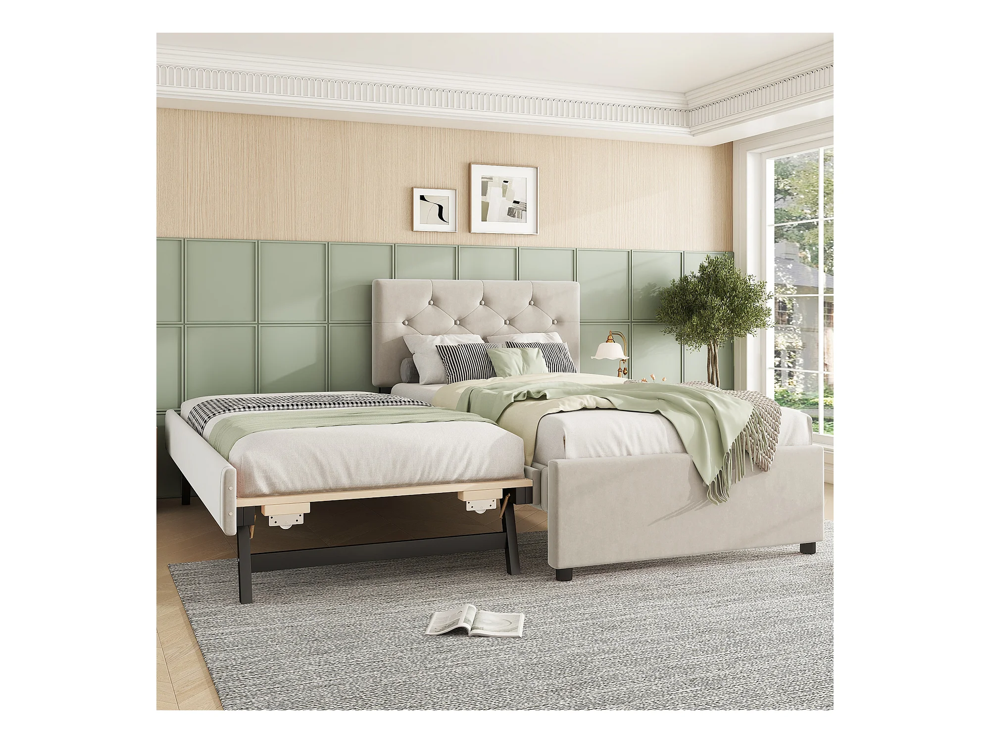 Lit gigogne 90 x 200 cm - Lit enfant avec lit gigogne et sommier à lattes - velours beige - sans matelas