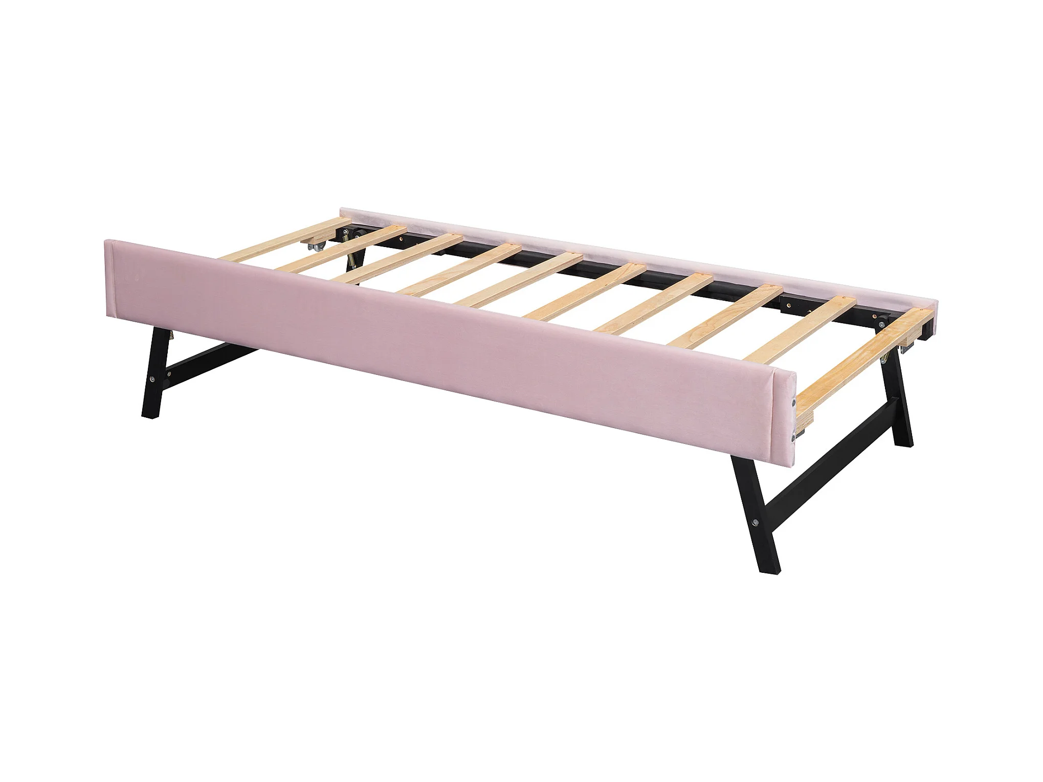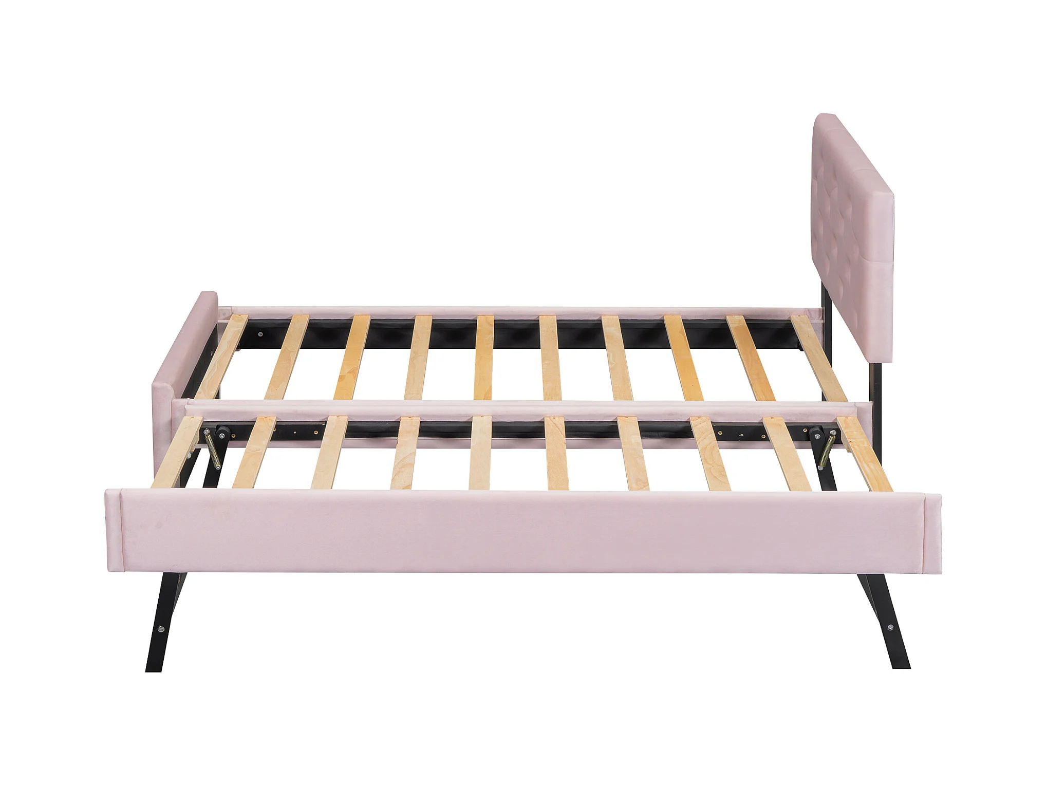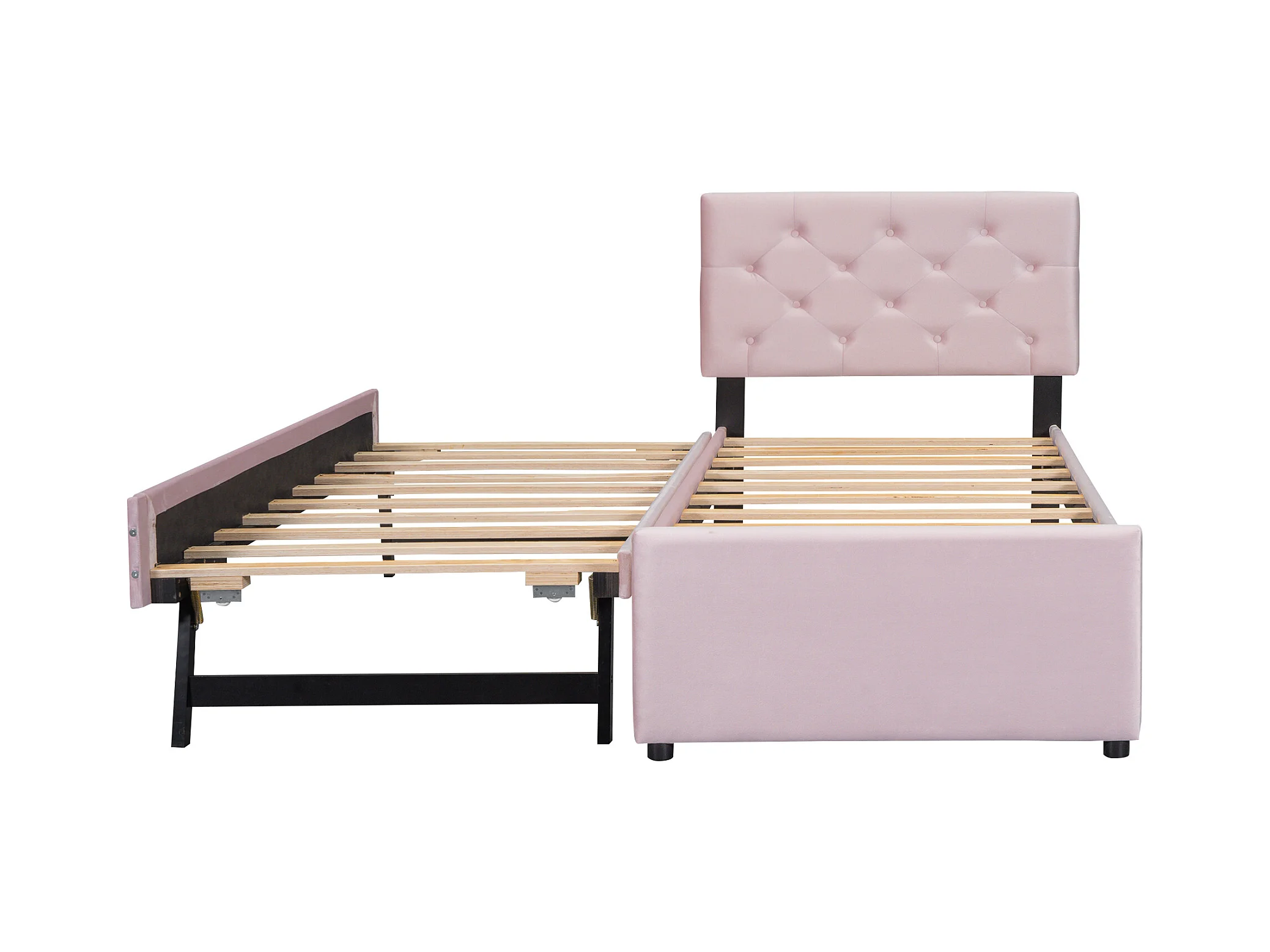 Lit gigogne 90 x 200 cm - Lit enfant avec lit gigogne et sommier à lattes - velours rose - sans matelas
