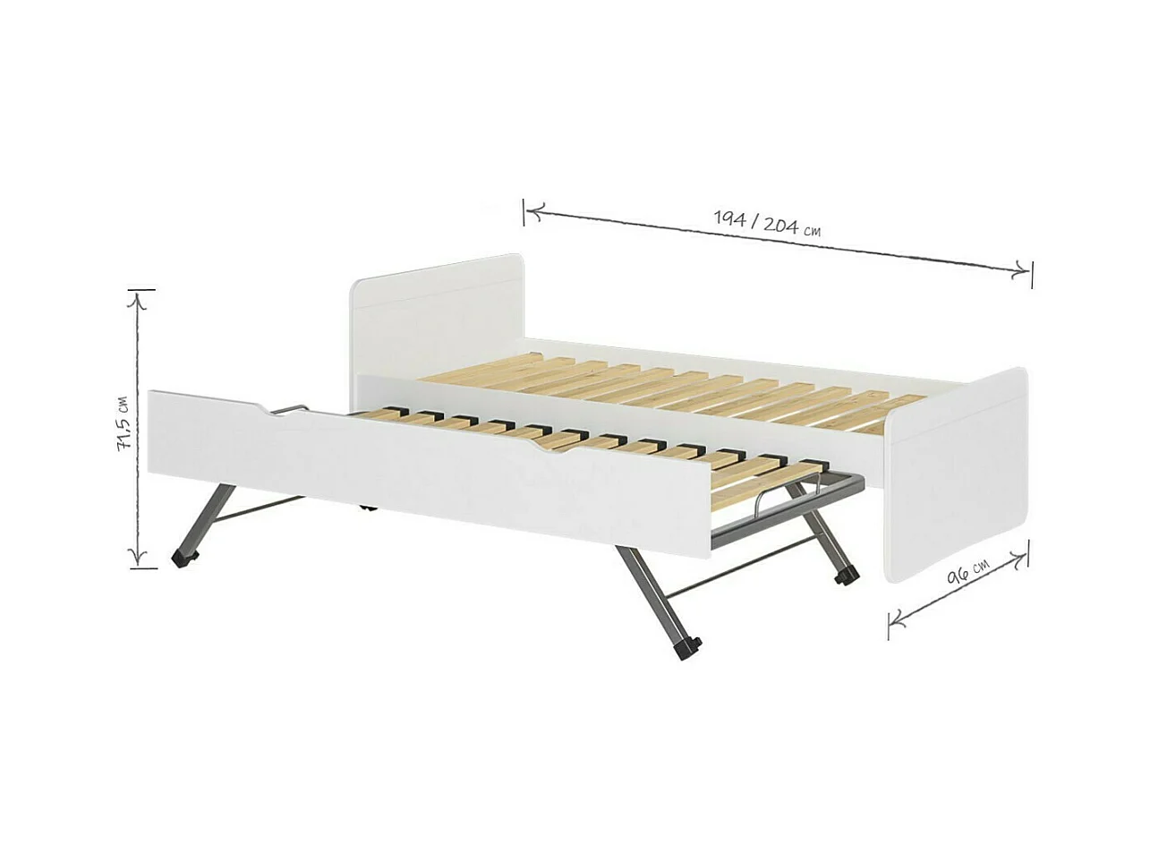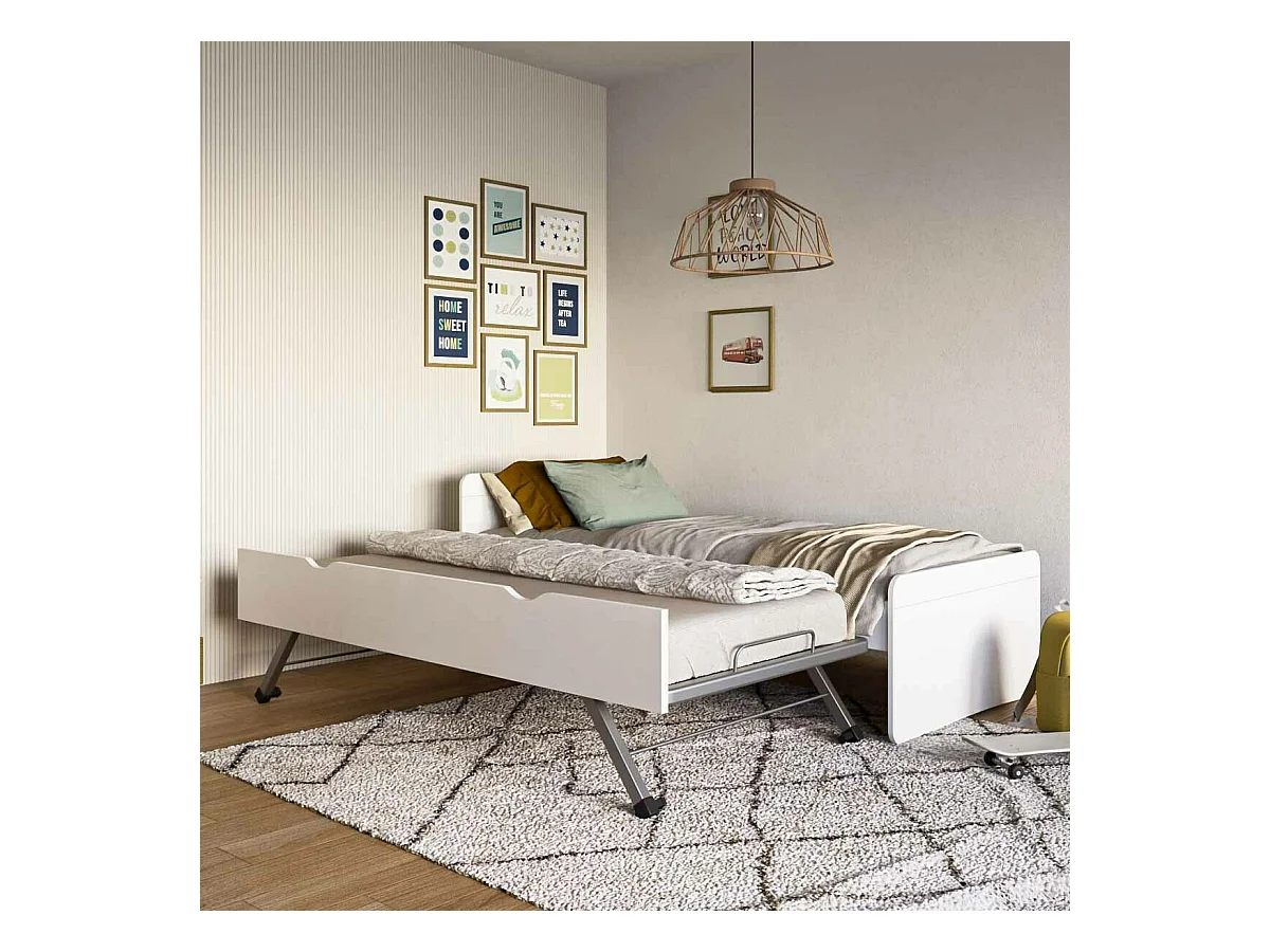 Lit gigogne 90x190 cm bois massif blanc LILOW