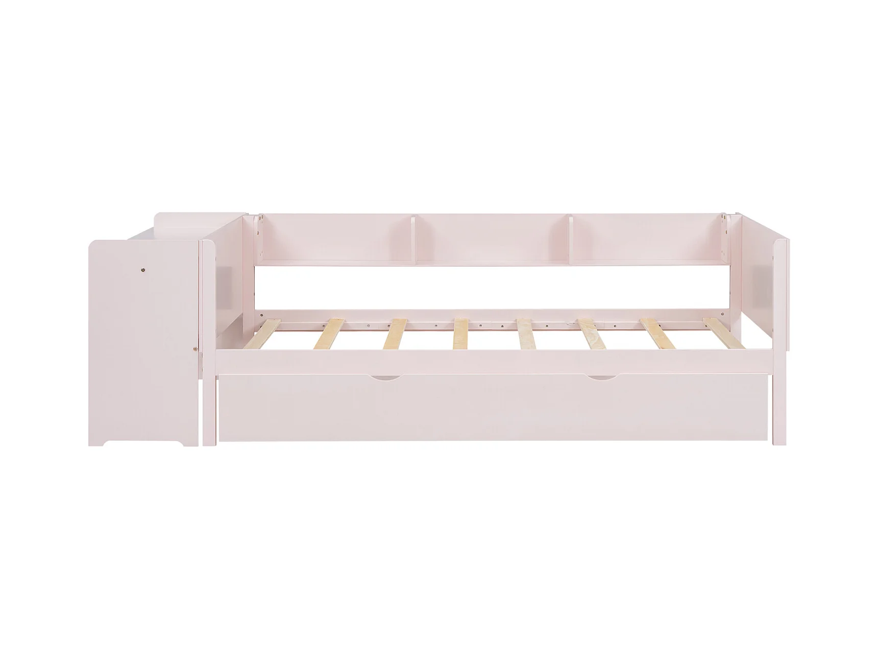 Lit gigogne 90x200cm+90x180cm, avec petit bureau, trois étagères sur le côté du lit, rose