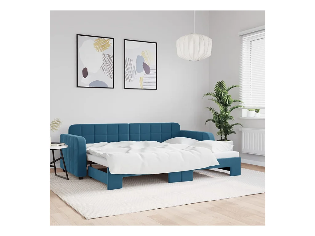 Lit gigogne bleu 80x200 cm velours WVGQ2455