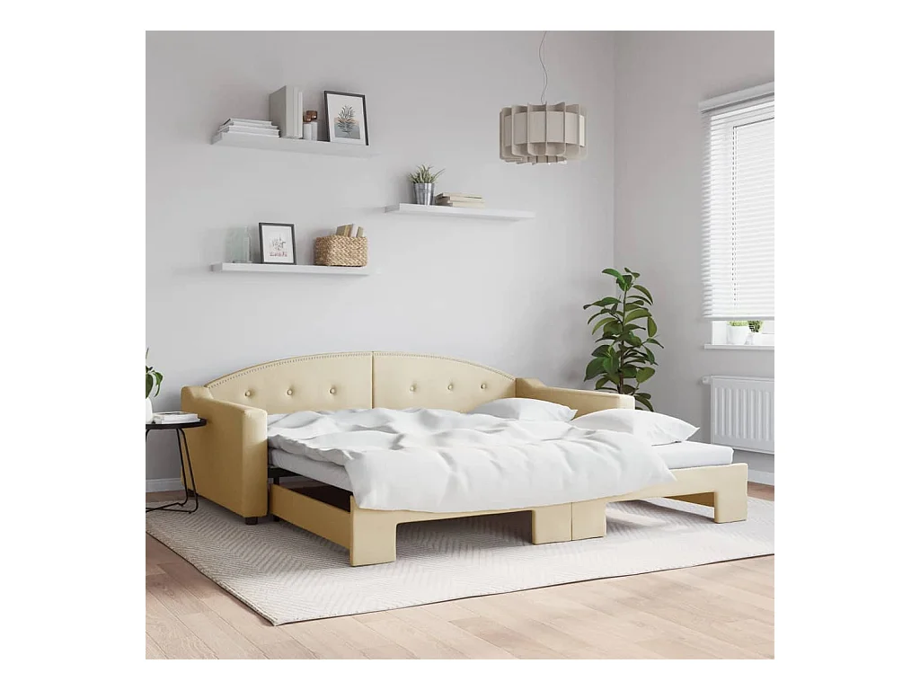 Lit gigogne crème 100x200 cm tissu WVGQ9007
