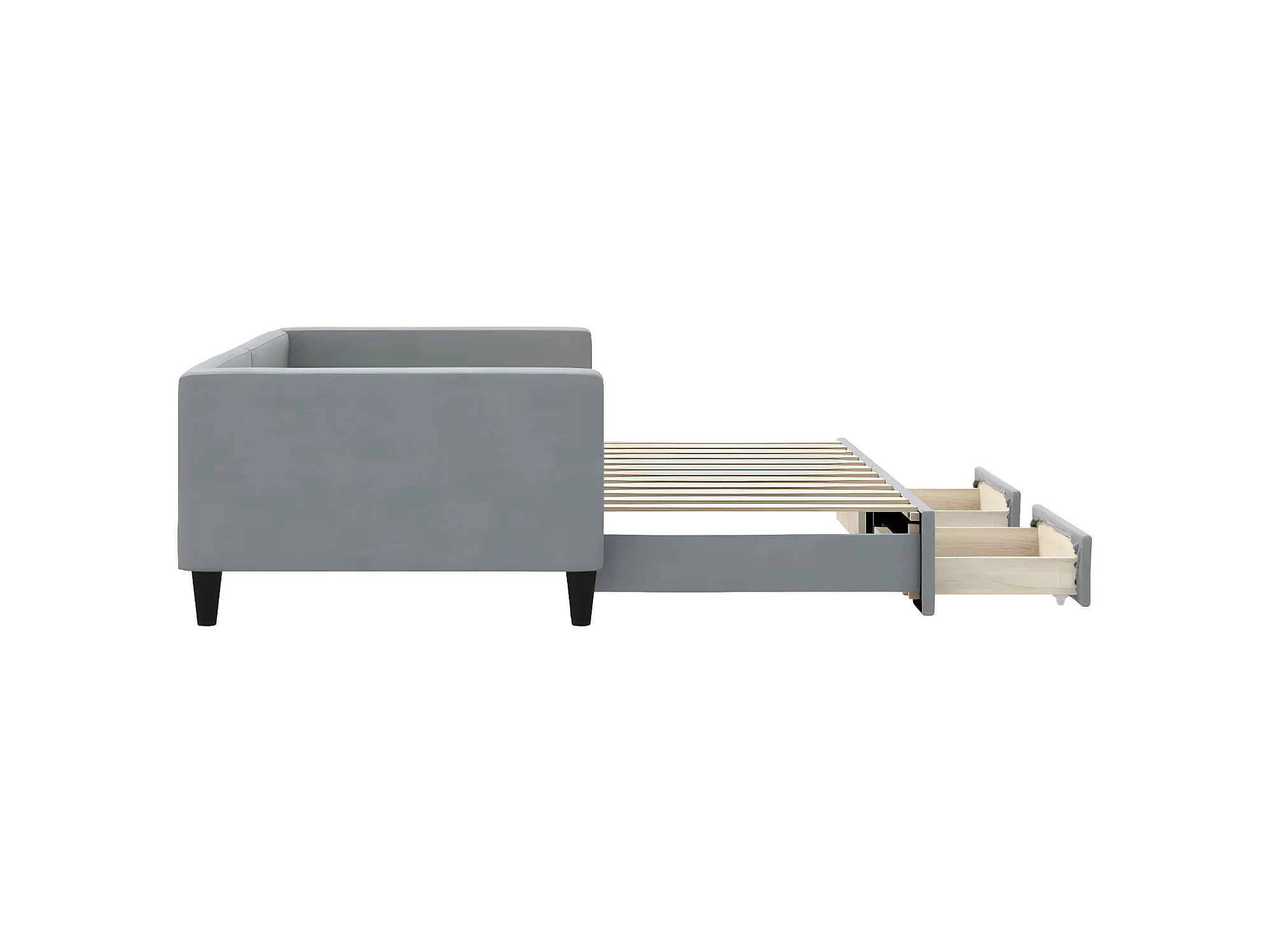 Lit gigogne et tiroirs gris clair 100x200 cm tissu WVGQ8241