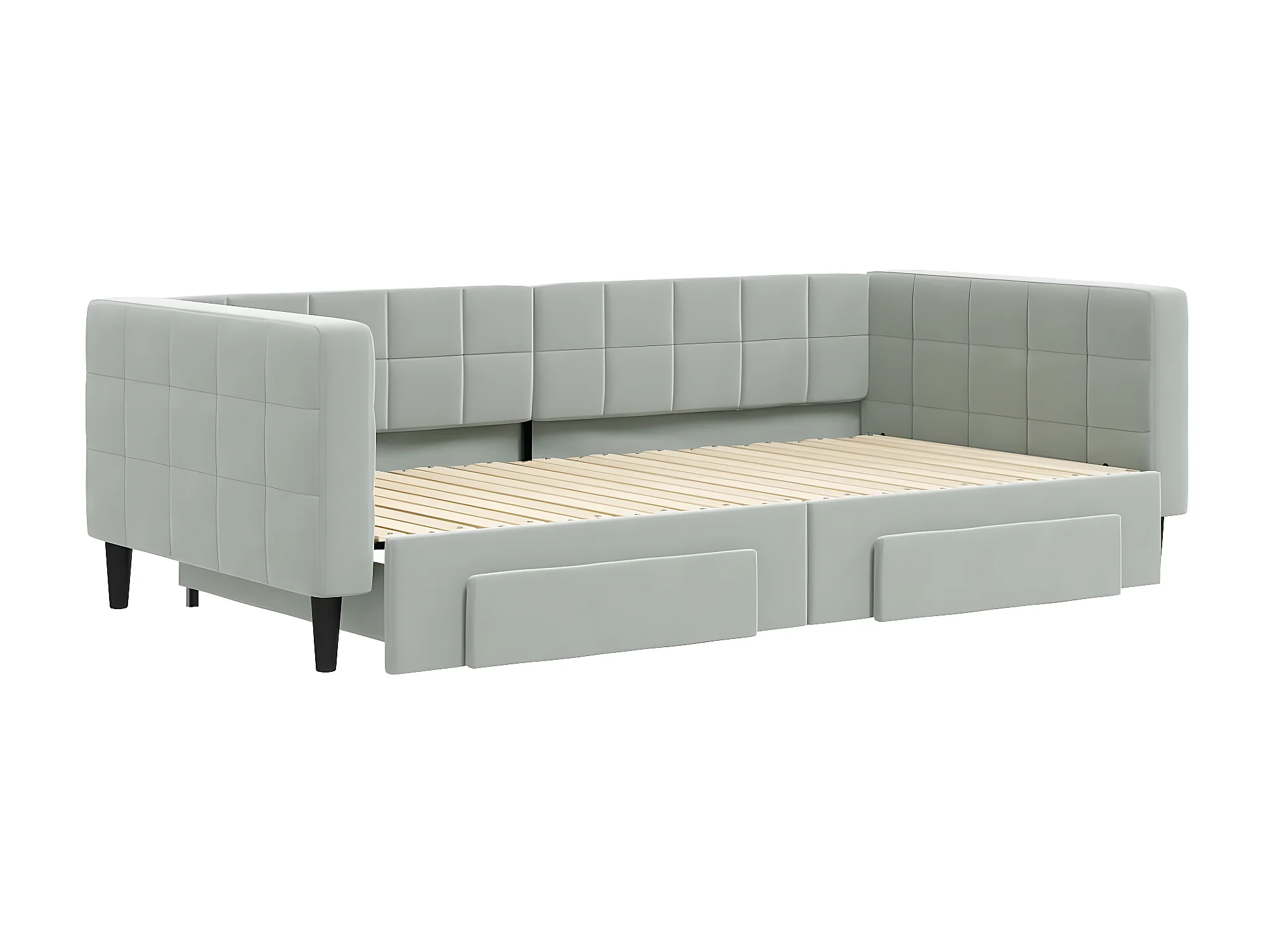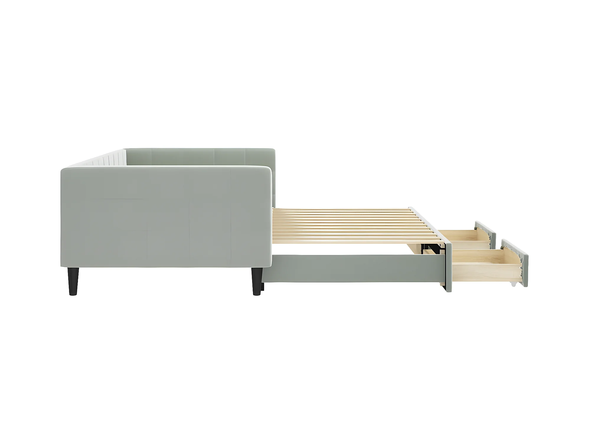 Lit gigogne et tiroirs gris clair 100x200 cm velours ASW43715