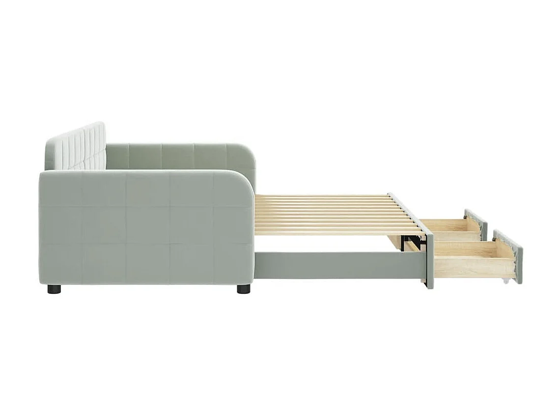 Lit gigogne et tiroirs gris clair 90x200cm velours WVGQ9271
