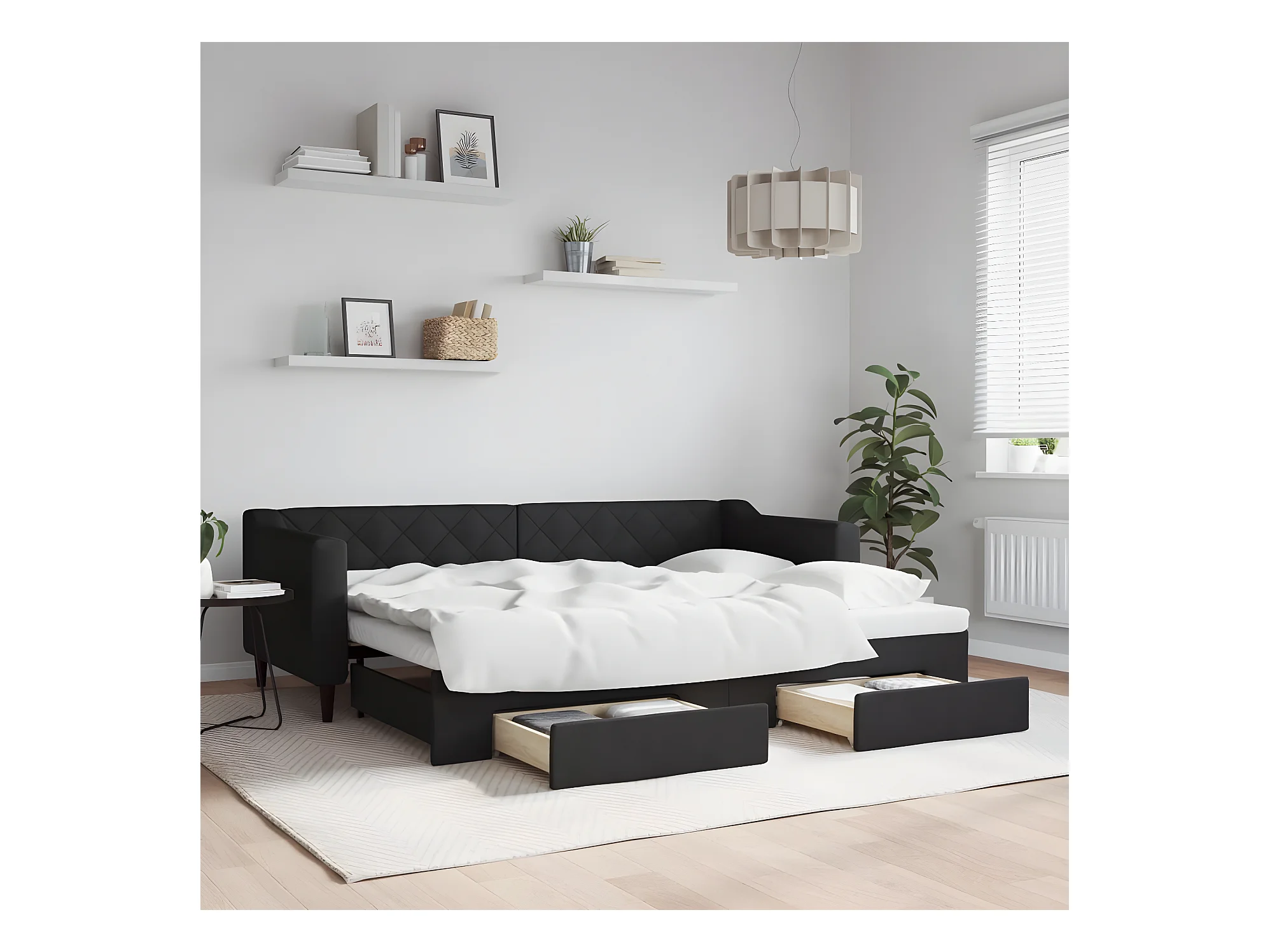 Lit gigogne et tiroirs noir 80x200 cm tissu WVGQ7701