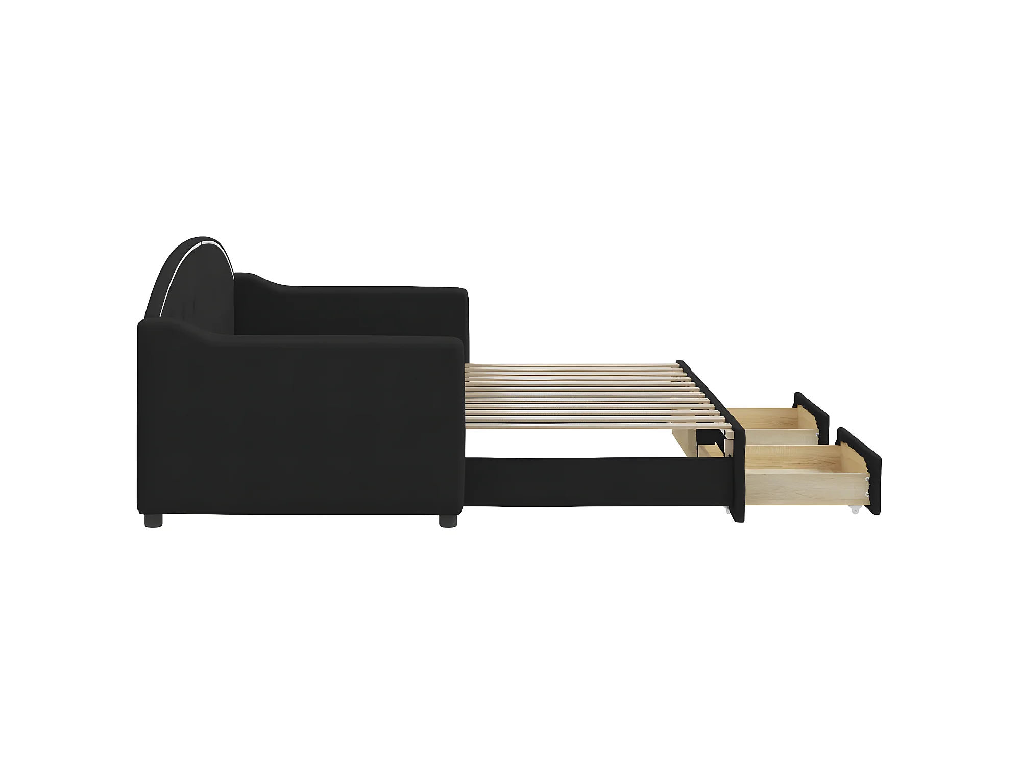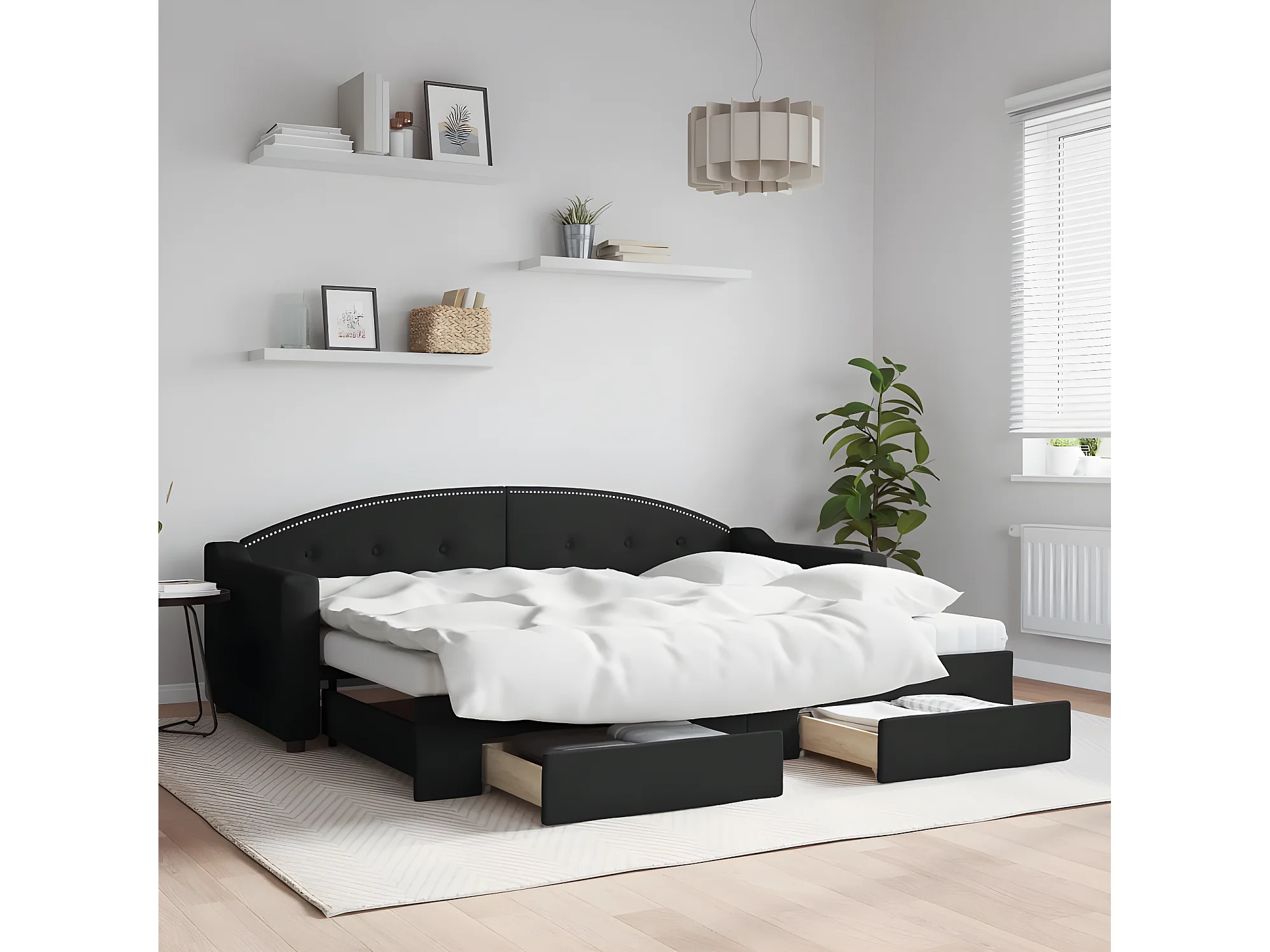 Lit gigogne et tiroirs noir 80x200 cm tissu WVGQ8835
