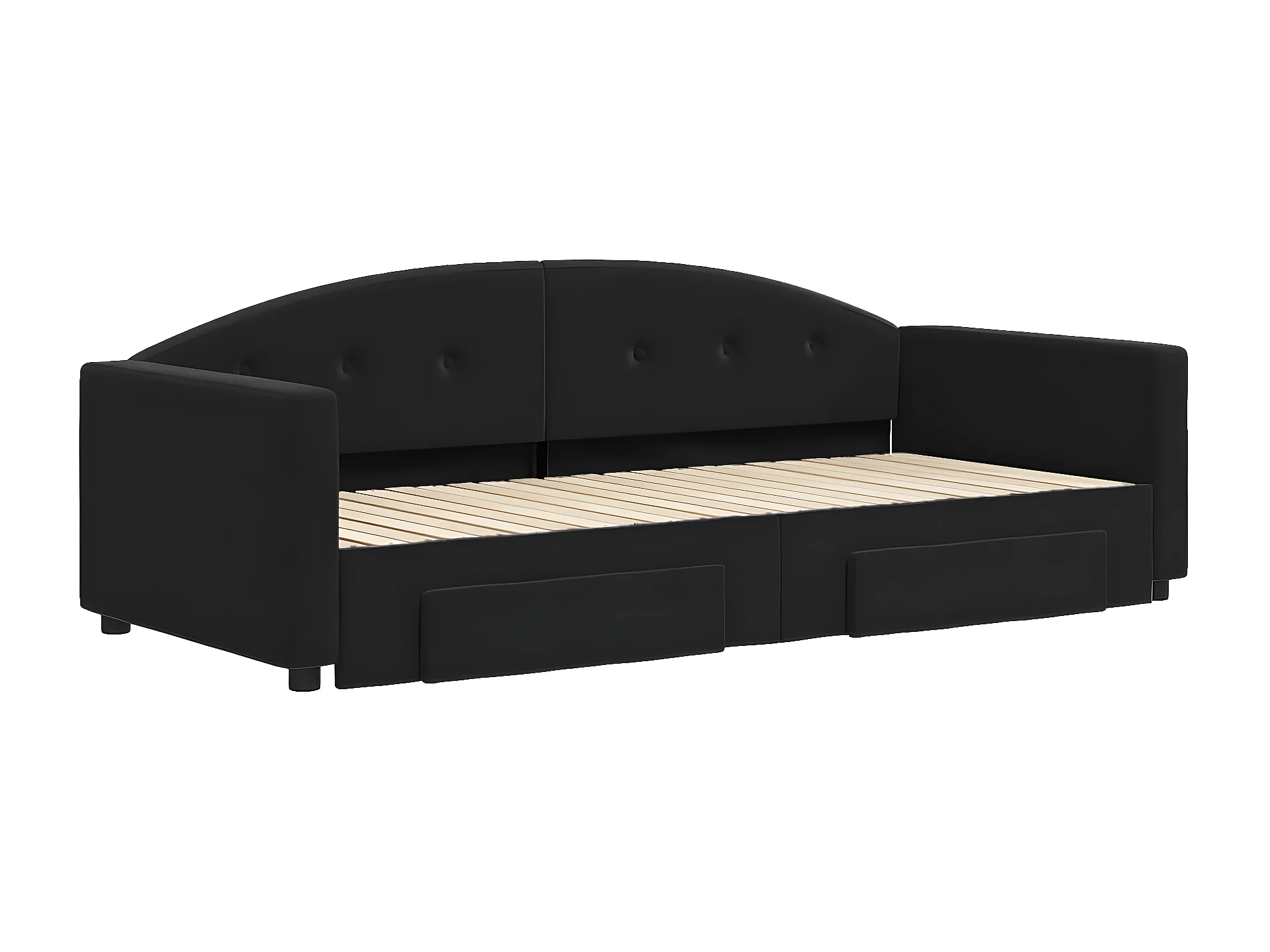 Lit gigogne et tiroirs noir 90x200 cm velours WVGQ1535