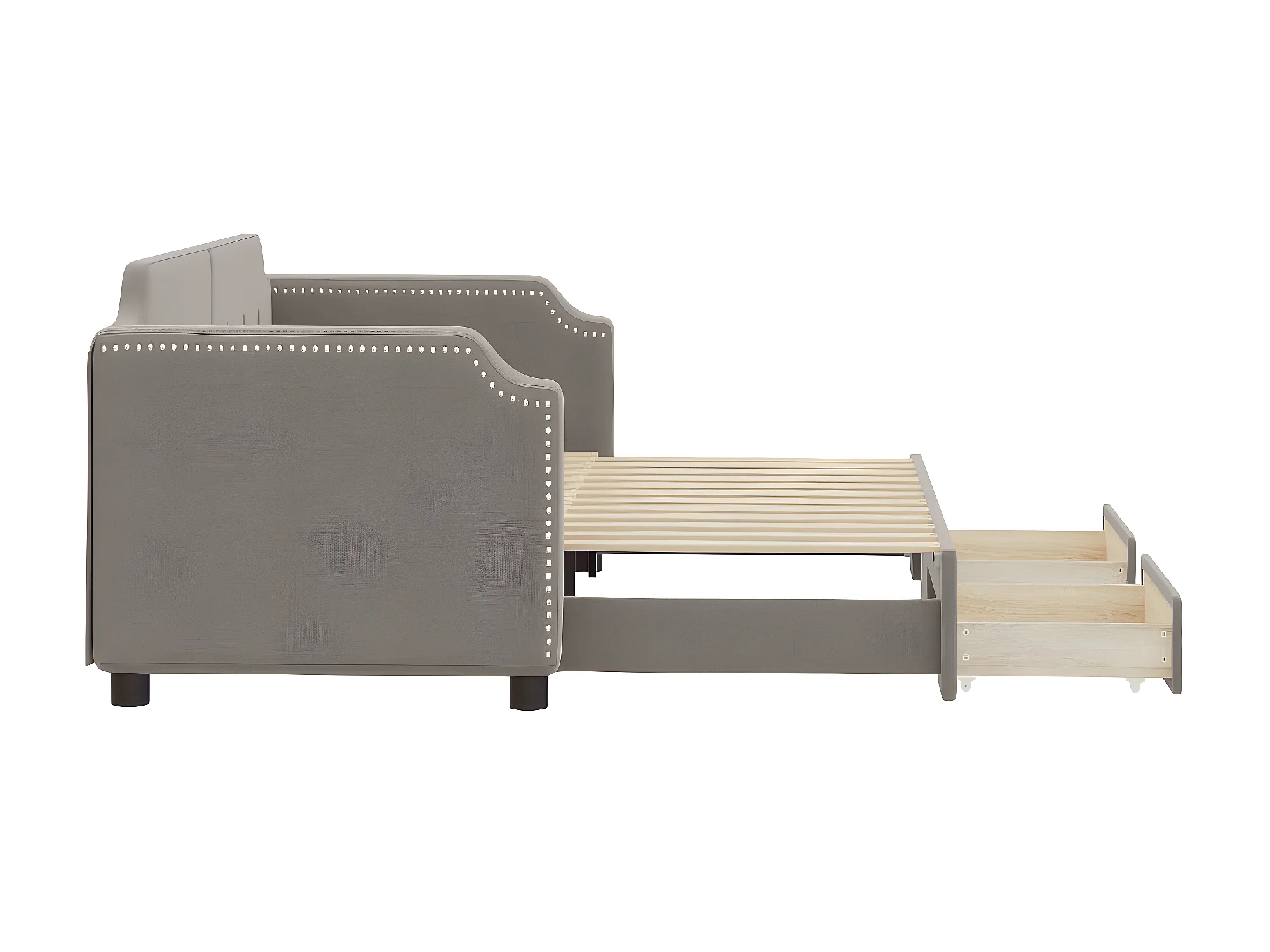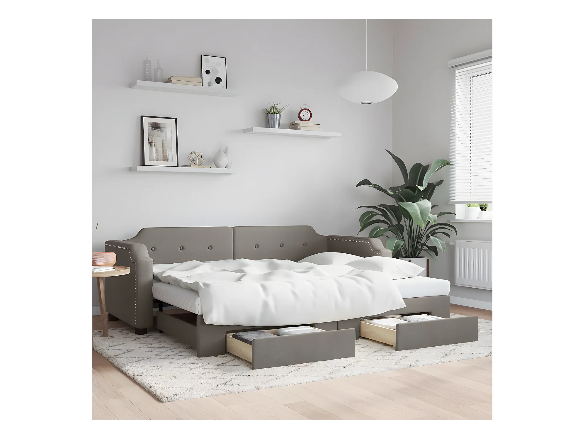 Lit gigogne et tiroirs taupe 80x200 cm tissu WVGQ7622