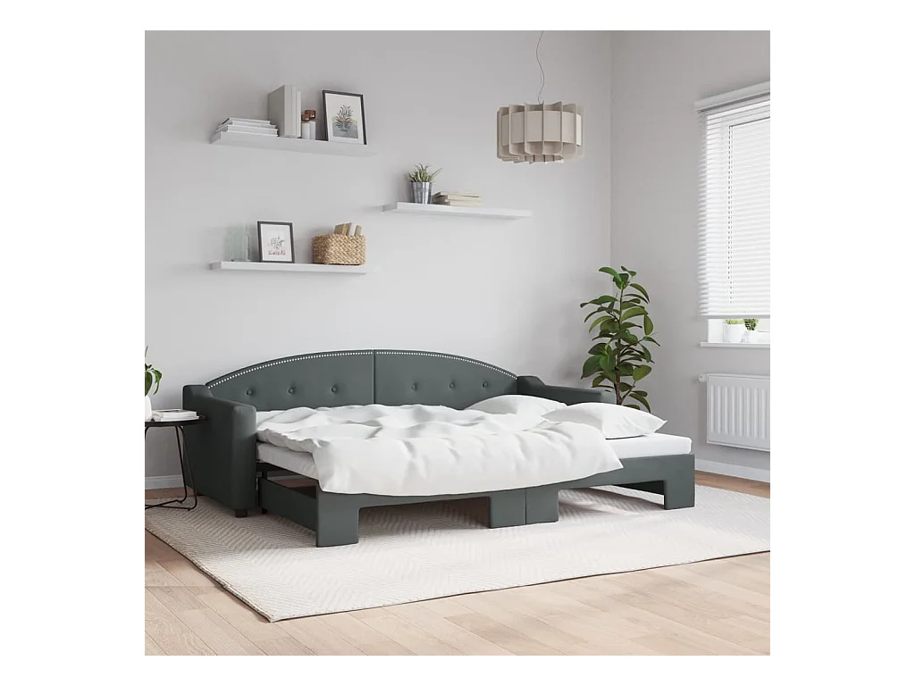 Lit gigogne gris foncé 80x200 cm tissu WVGQ9331