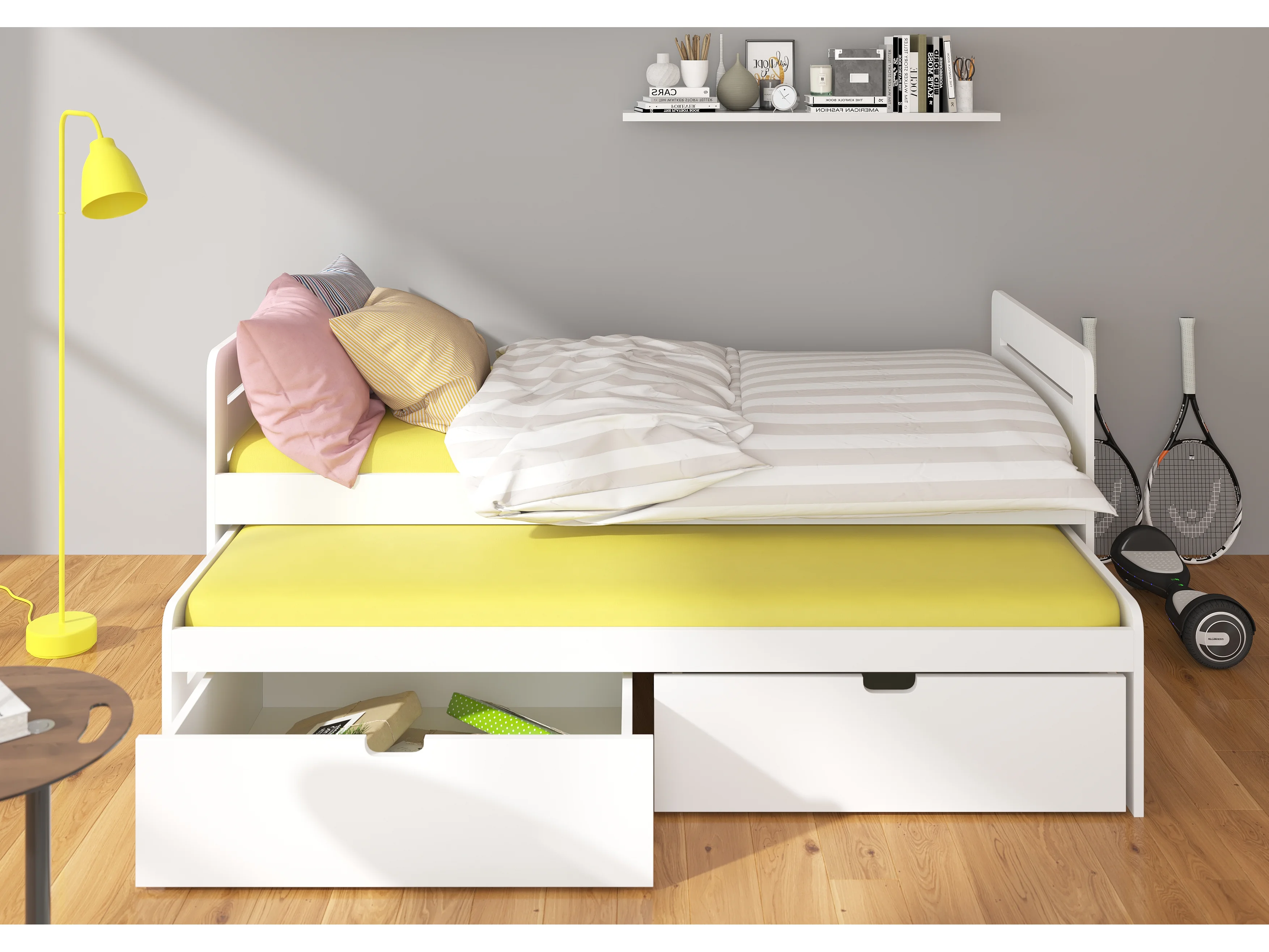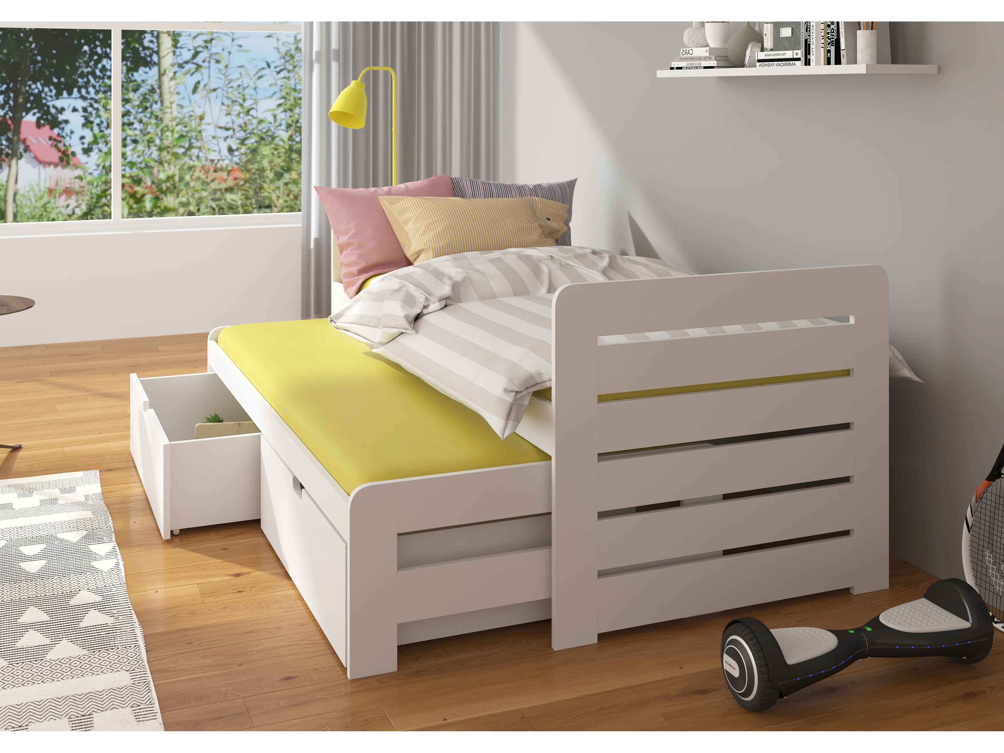 Lit gigogne gris graphite 2 couchages 90x200 avec 2 coffres de rangement Balina