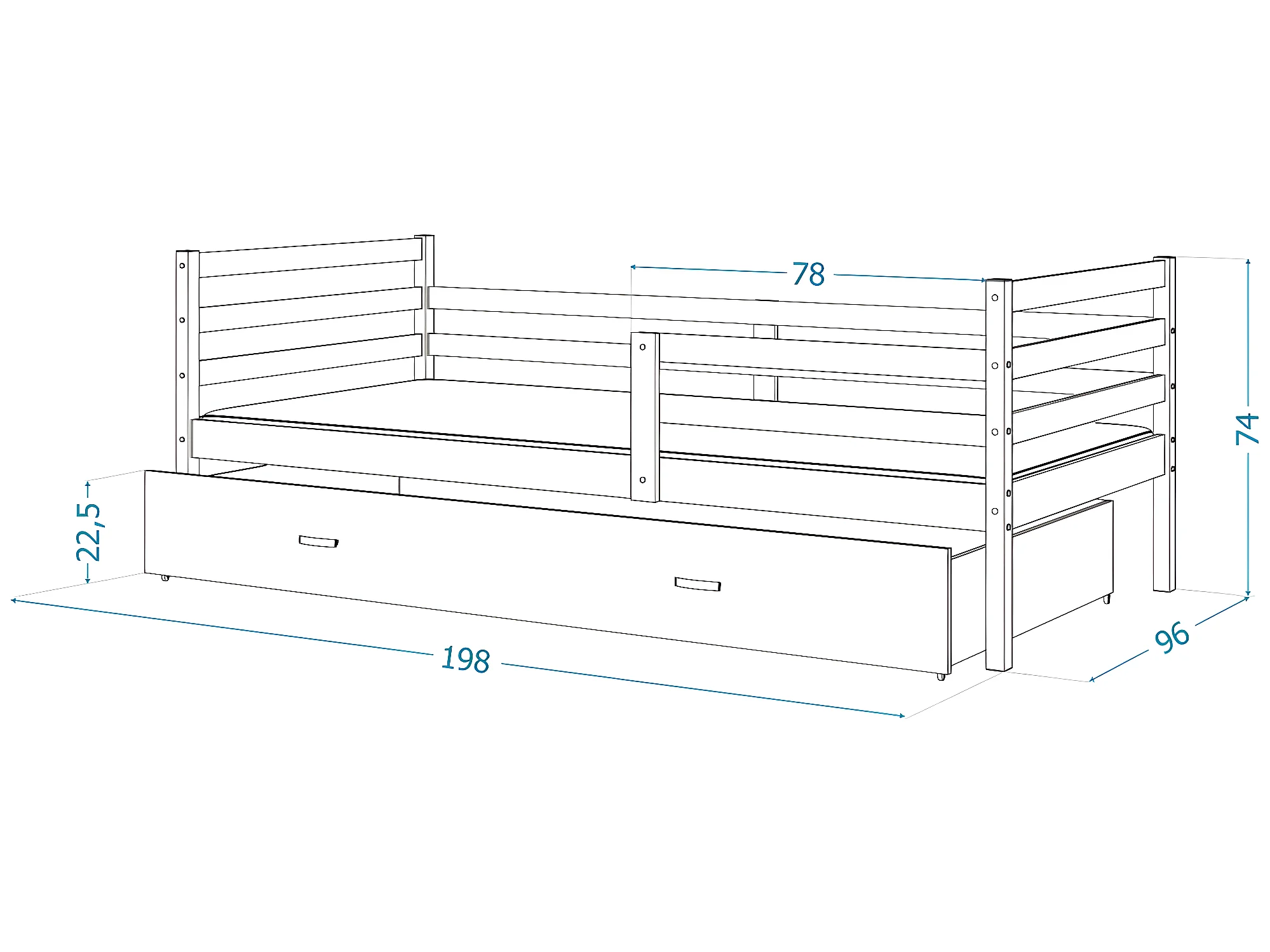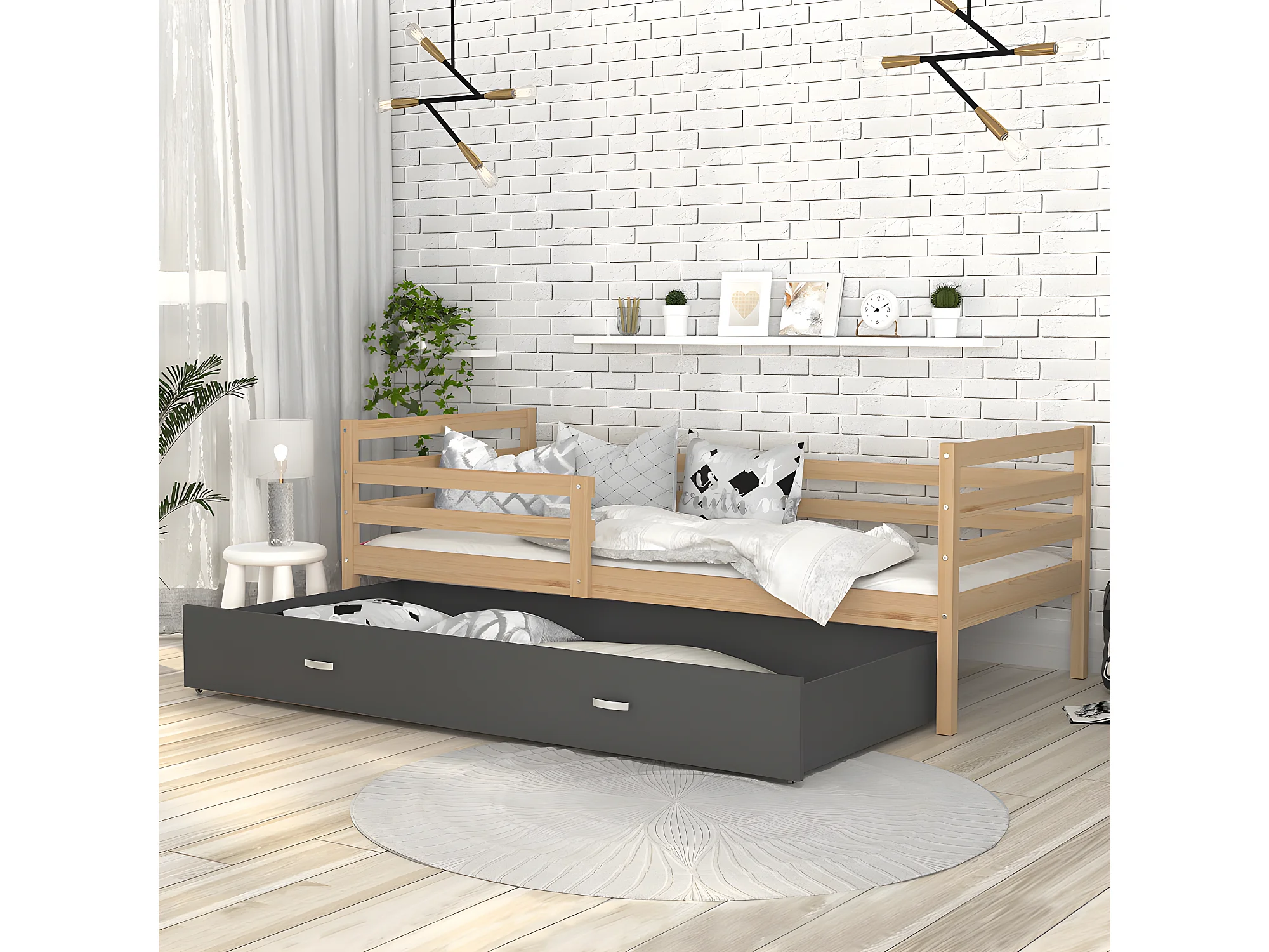 Lit Gigogne Milo 90x190 Pin - gris Livré avec sommiers, tiroir et matelas en mousse de 7cm