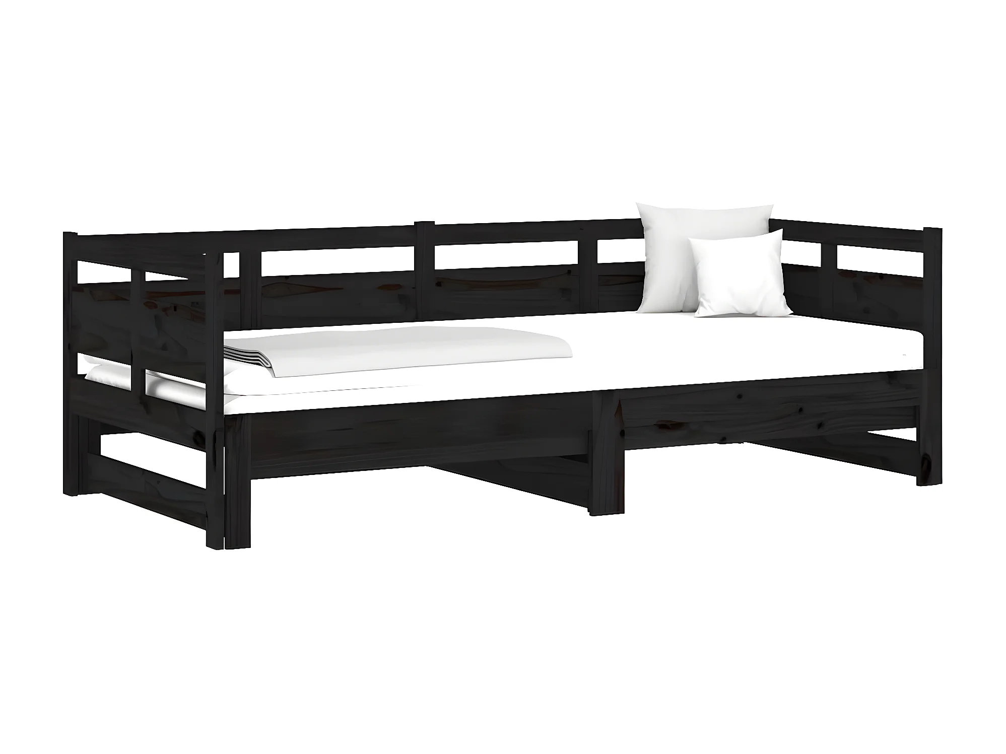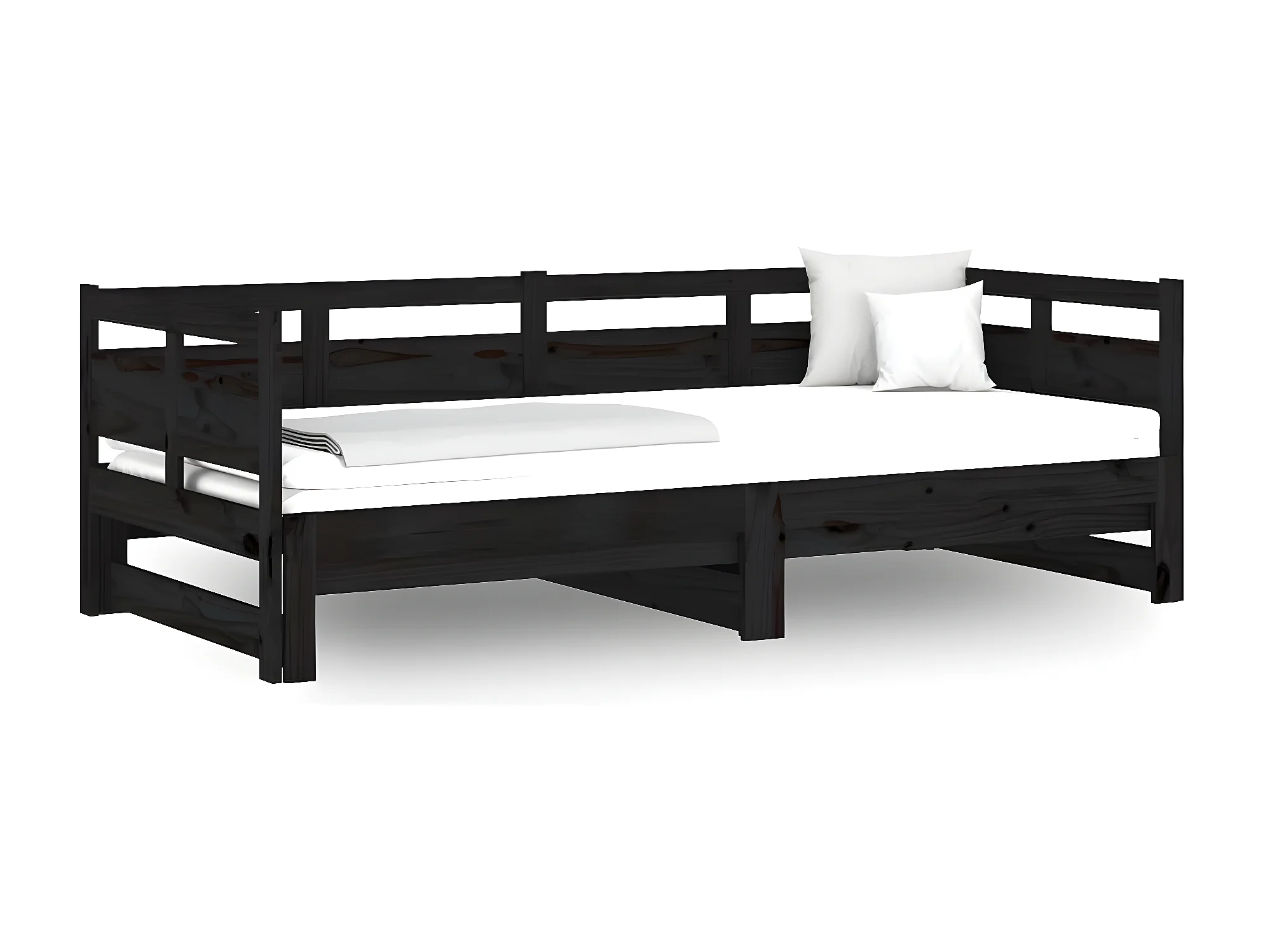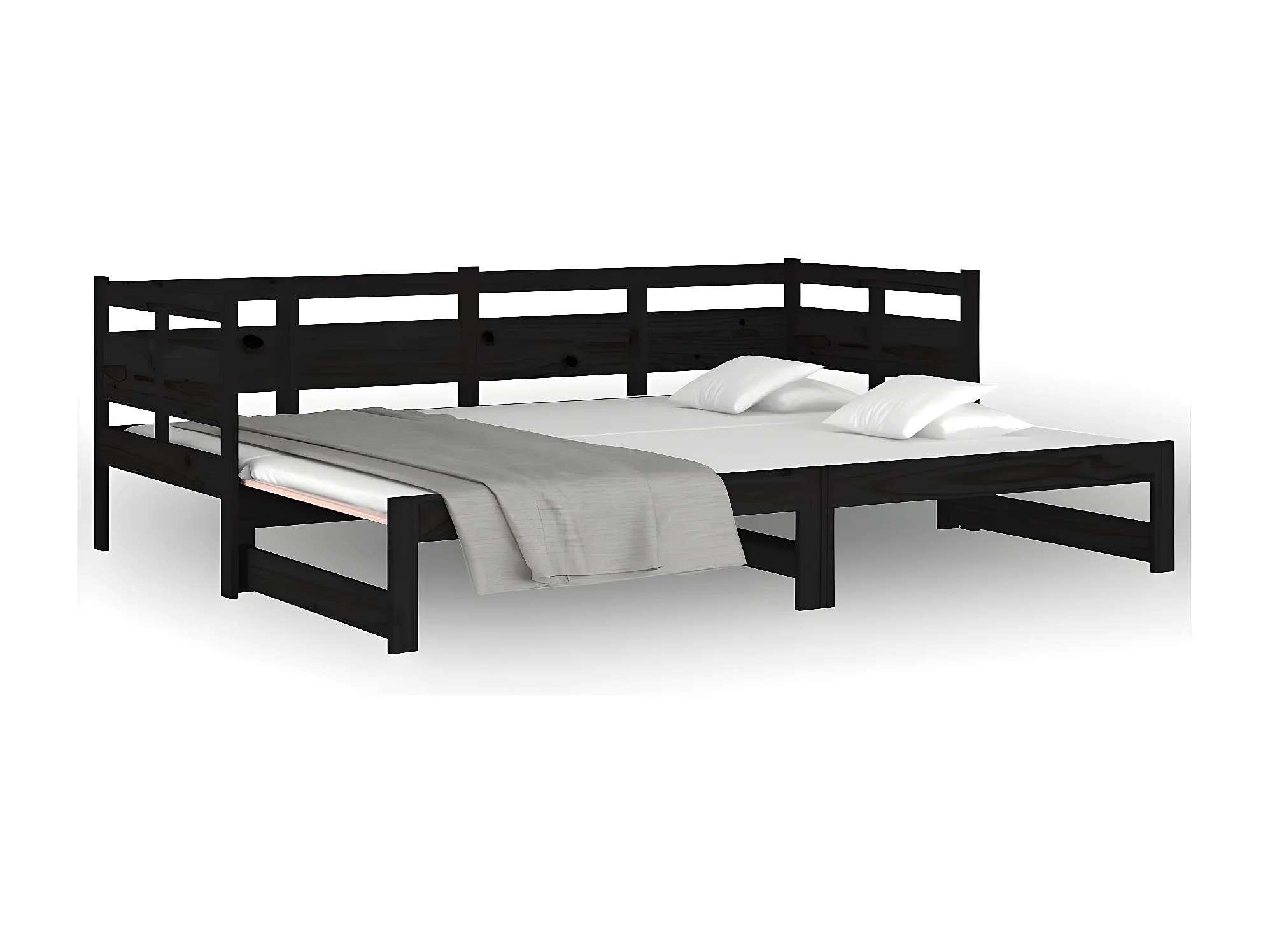 Lit gigogne Noir Bois de pin solide 2x(90x190) cm HOQW35304