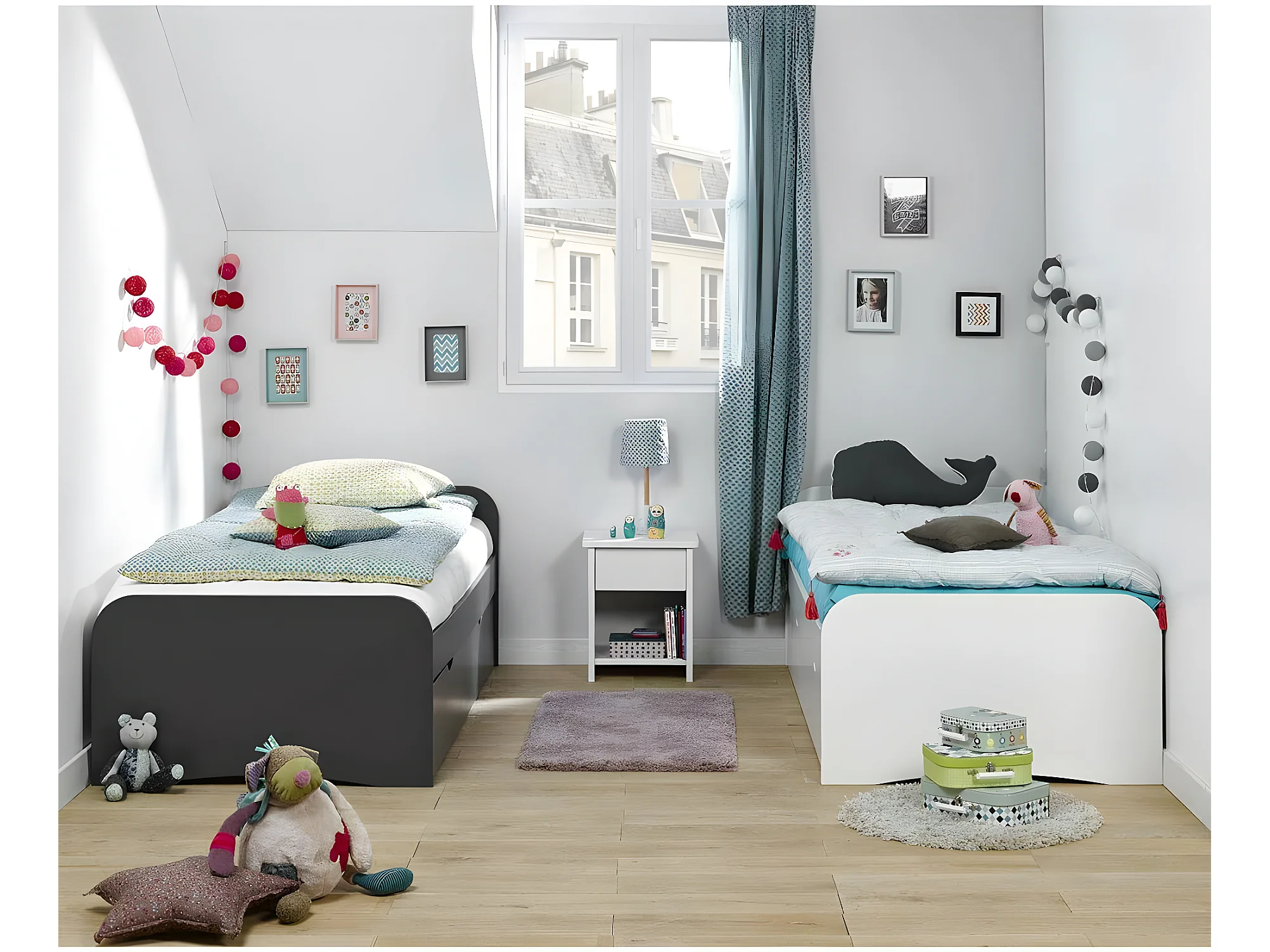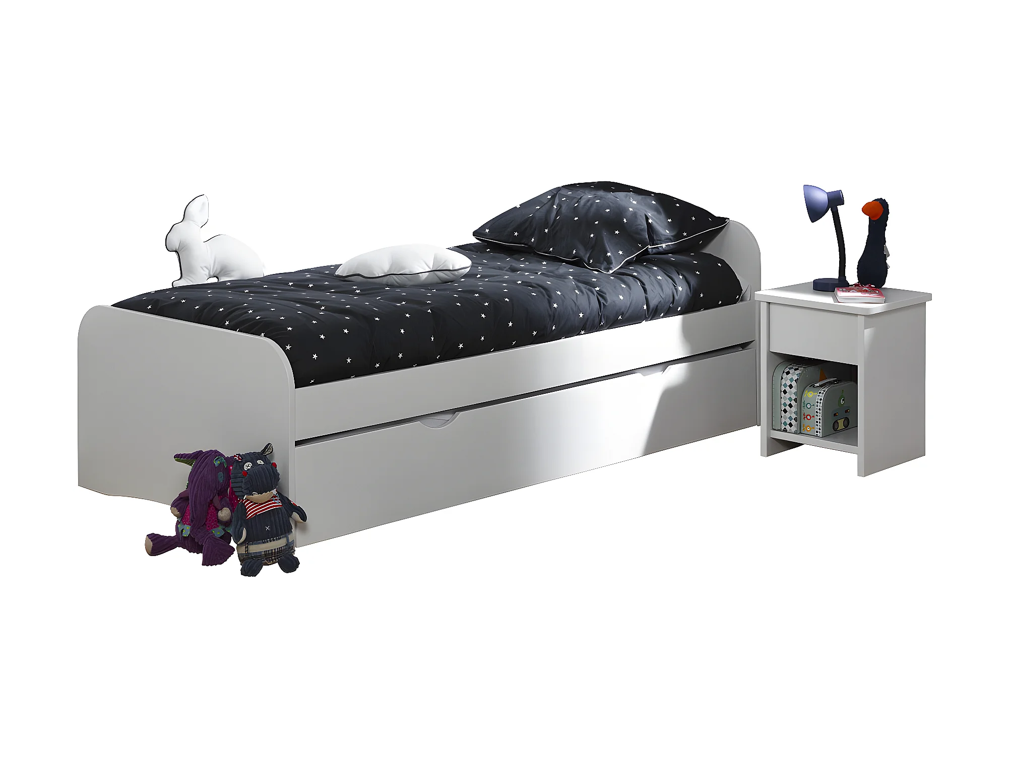 Lit gigogne 90x190 cm bois massif blanc THAIS