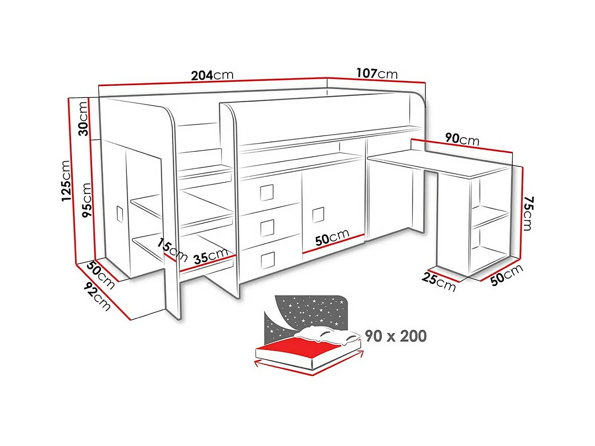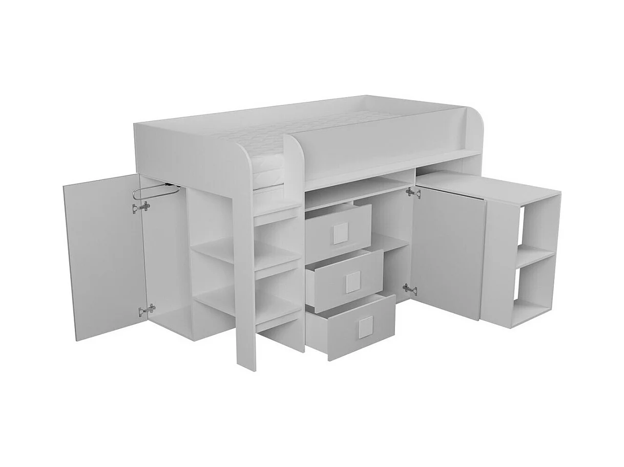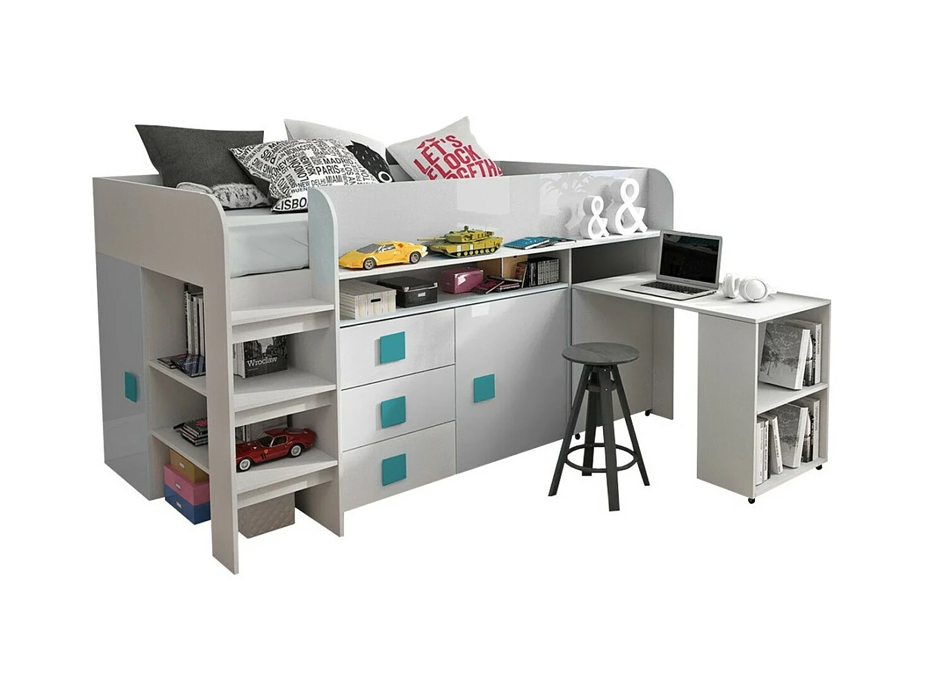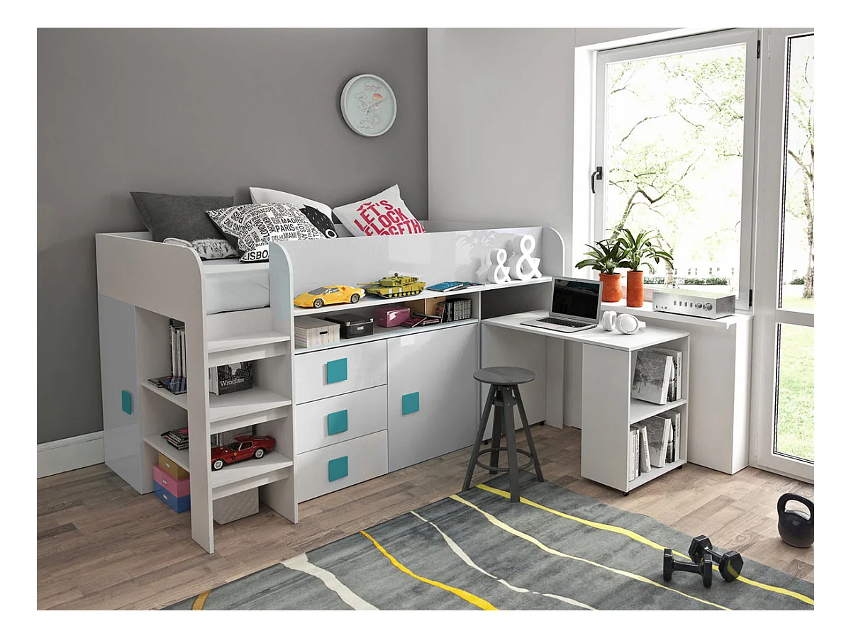 Lit Hartford 190, Unique, Blanc, 90x200, Stratifié, Sommier à lattes, 107x204x125cm