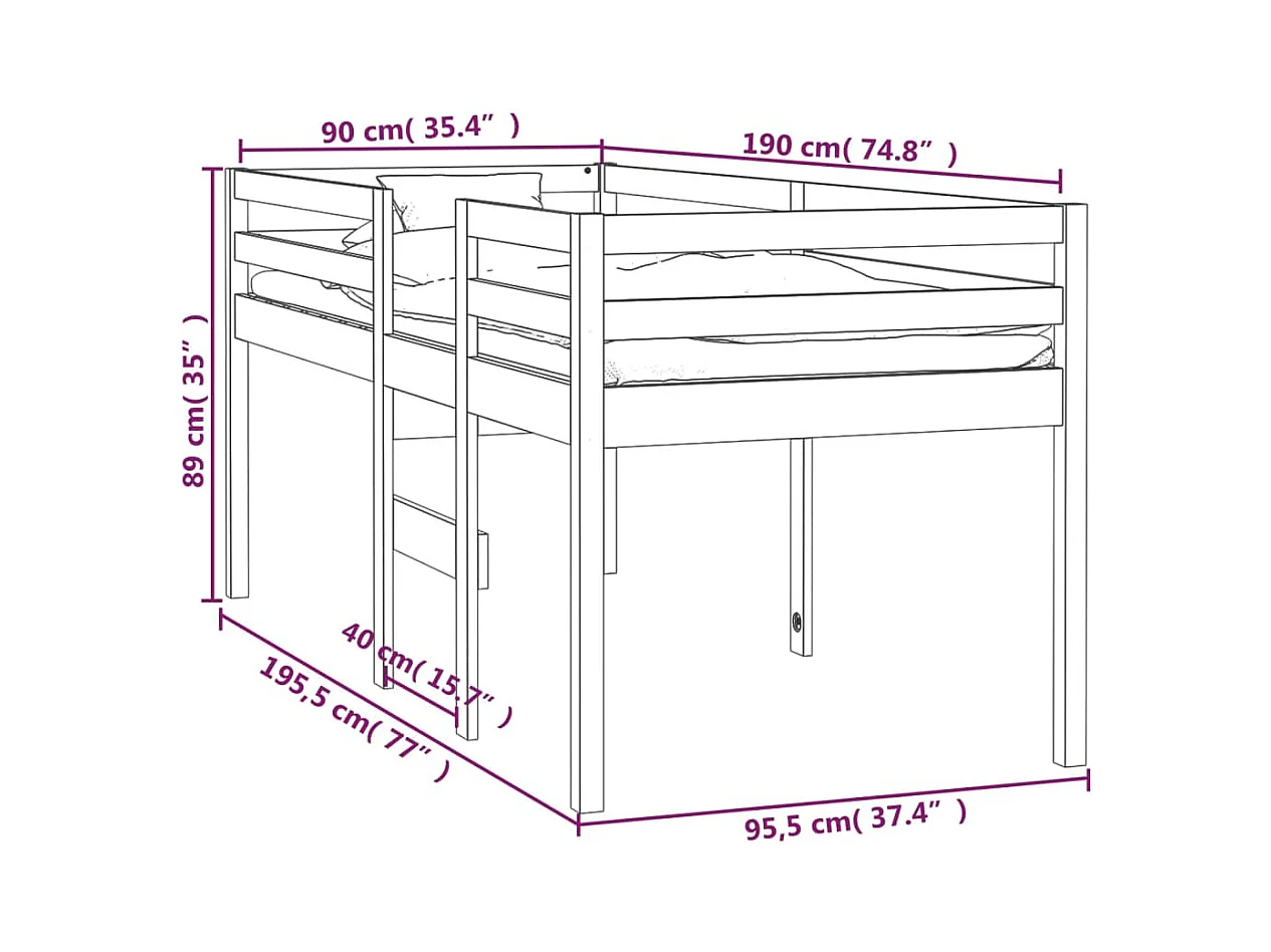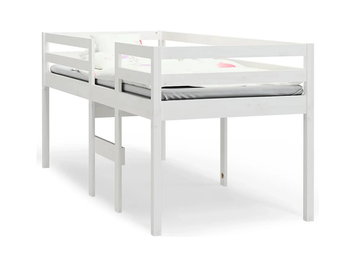 Lit haut Blanc 90x190 cm Bois de pin massif