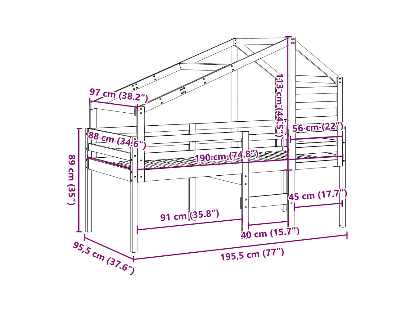 Lit haut sans matelas 90x190 cm bois de pin massif