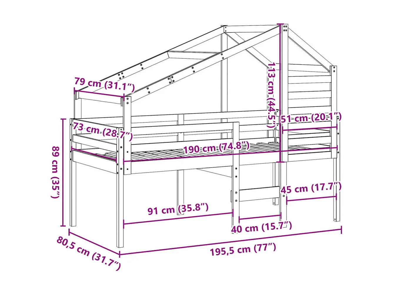 Lit haut sans matelas cire marron 75x190 cm bois de pin massif