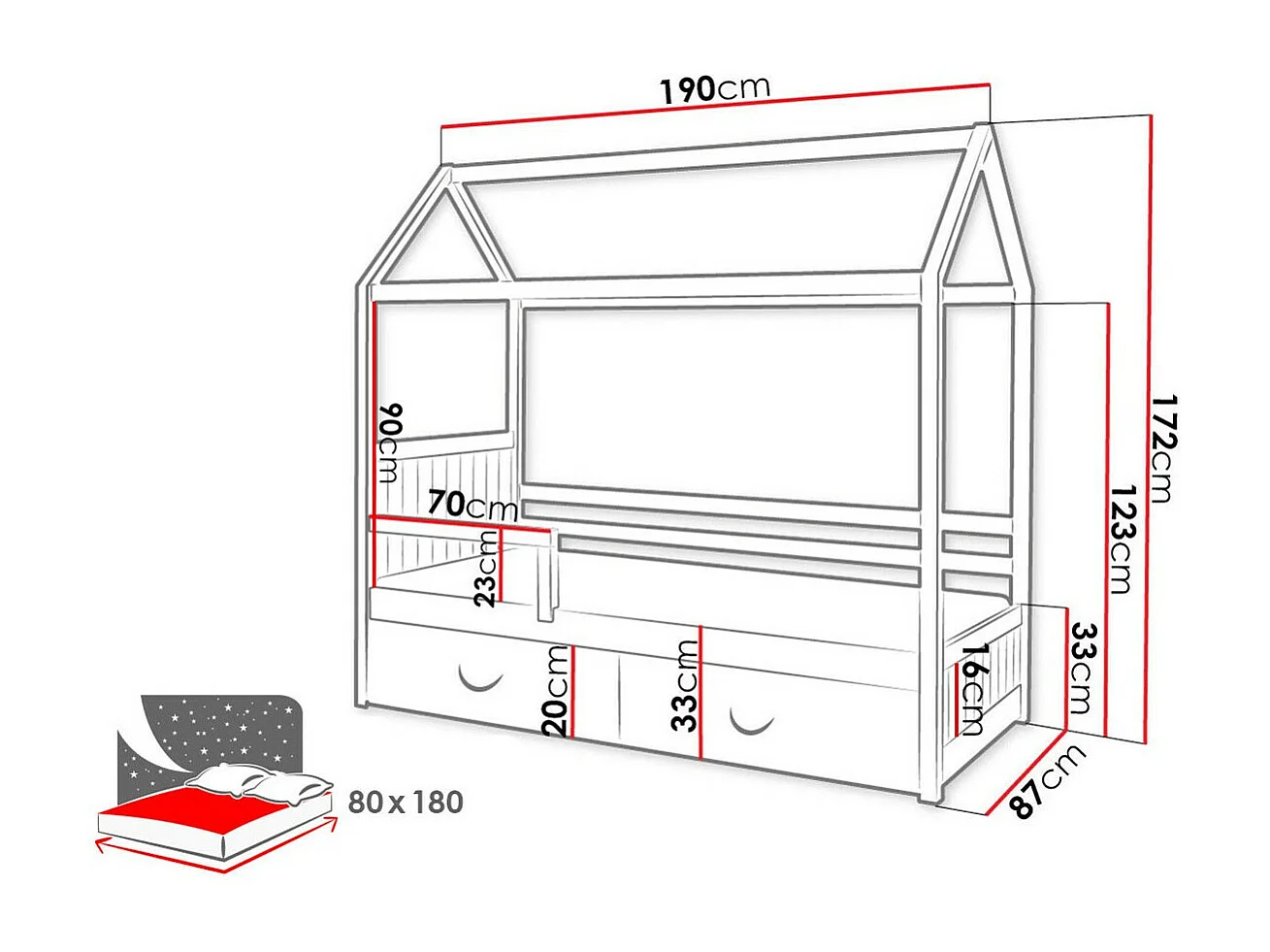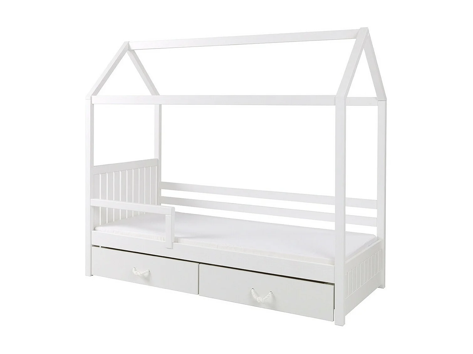 Lit Henderson 134, Unique, Blanc, 80x180, Bois, Sommier à lattes, 87x190x172cm