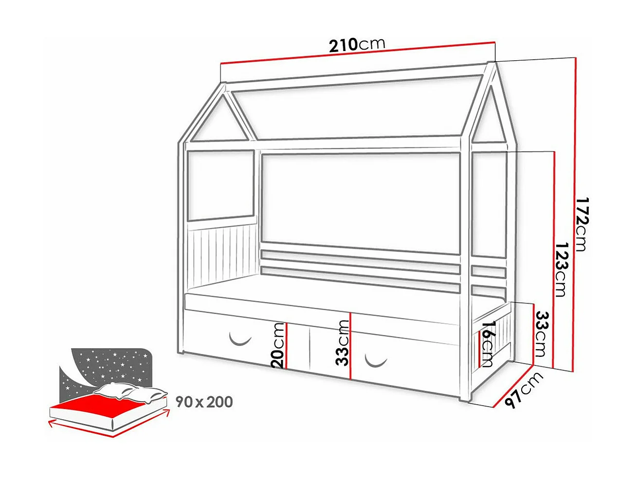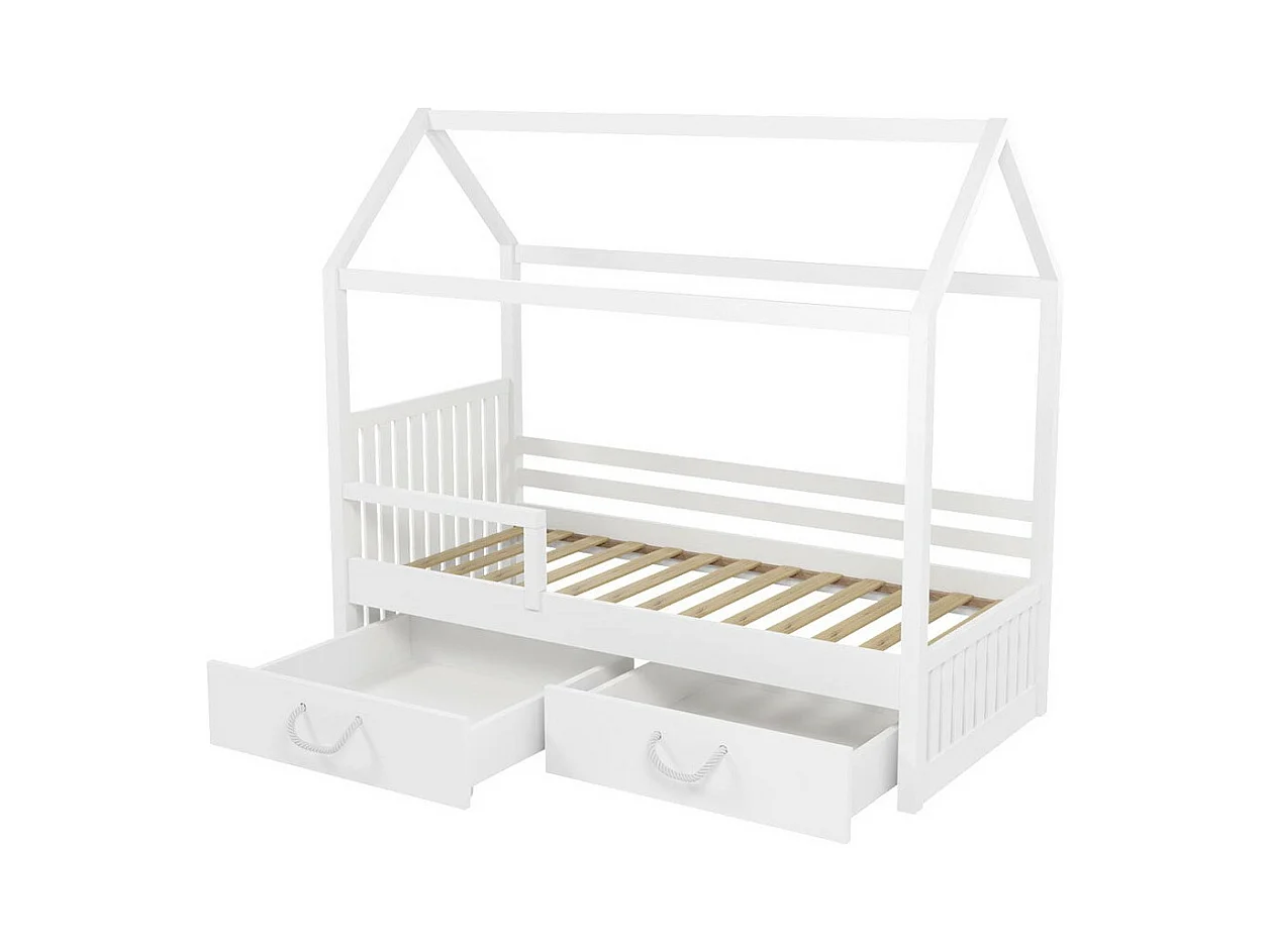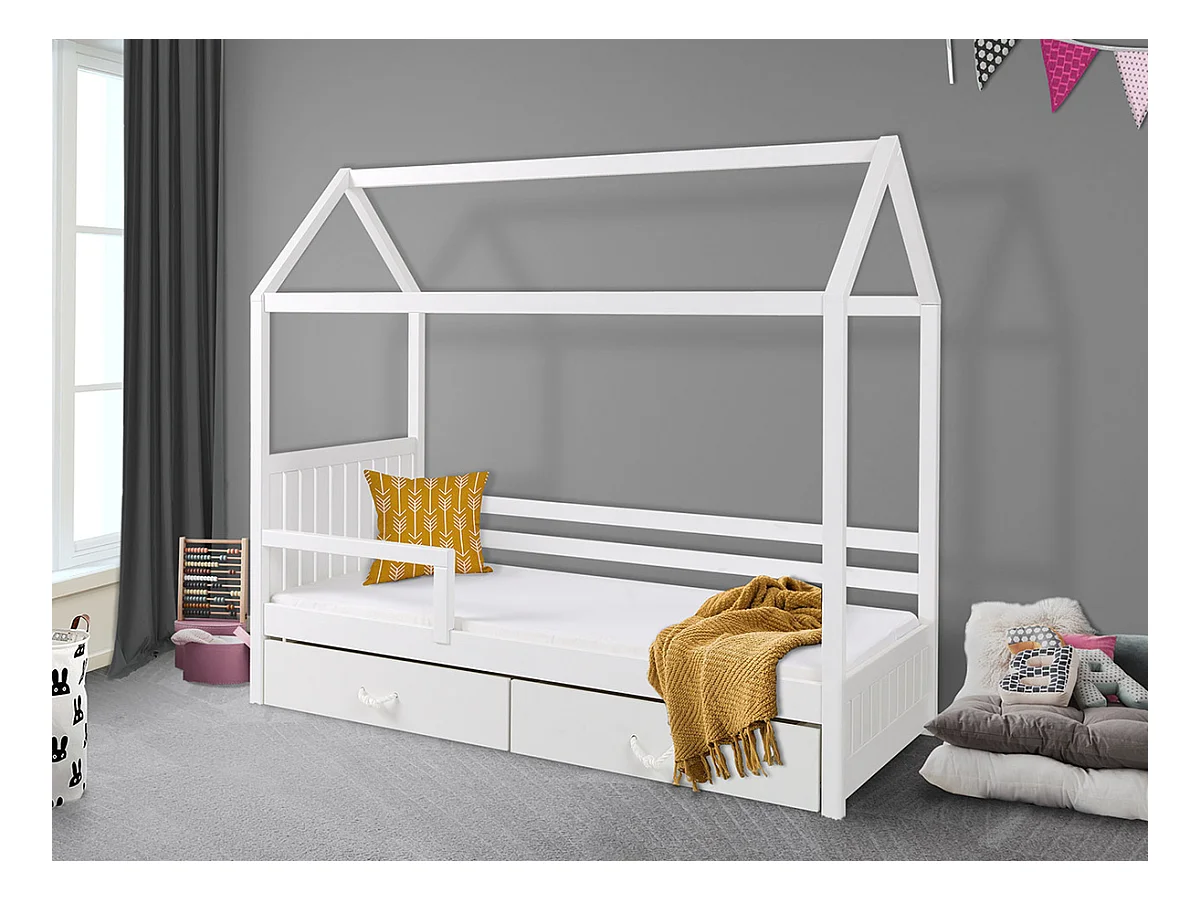Lit Henderson 134, Unique, Blanc, 90x200, Bois, Sommier à lattes, 97x210x172cm