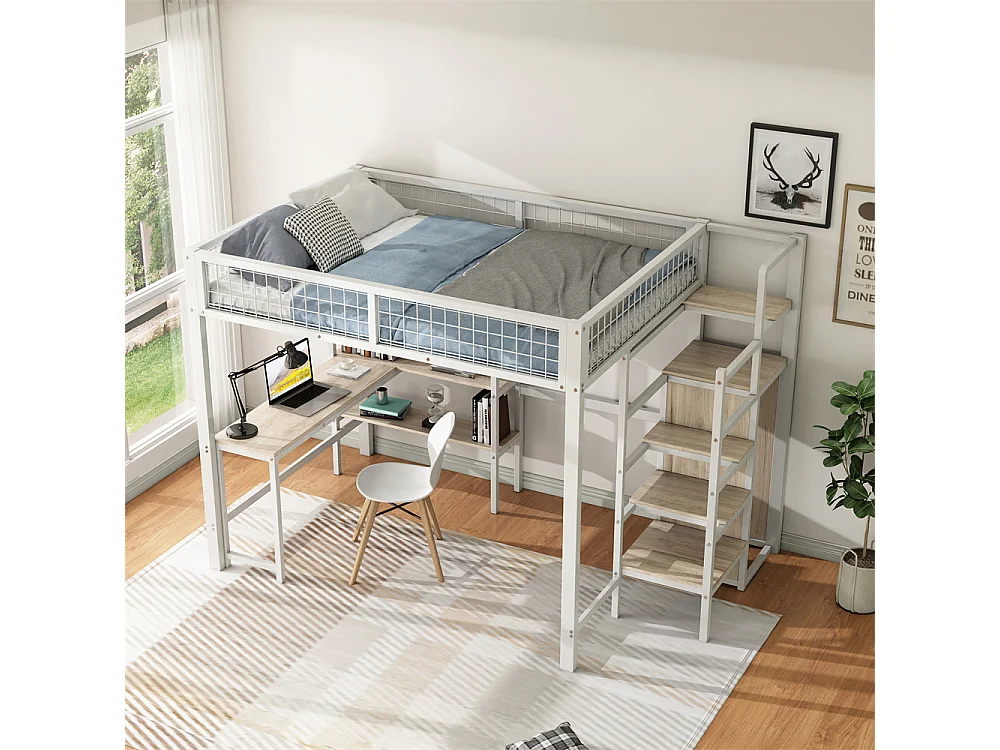Lit jeune lit 140x200 cm lit en fer lit superposé avec armoire encastrée lit simple métal blanc