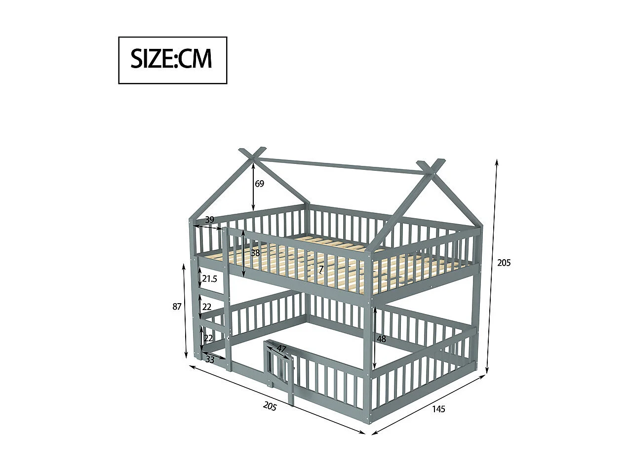 Lit jeune lit 140x200 cm lit superposé avec escalier lit simple bois gris