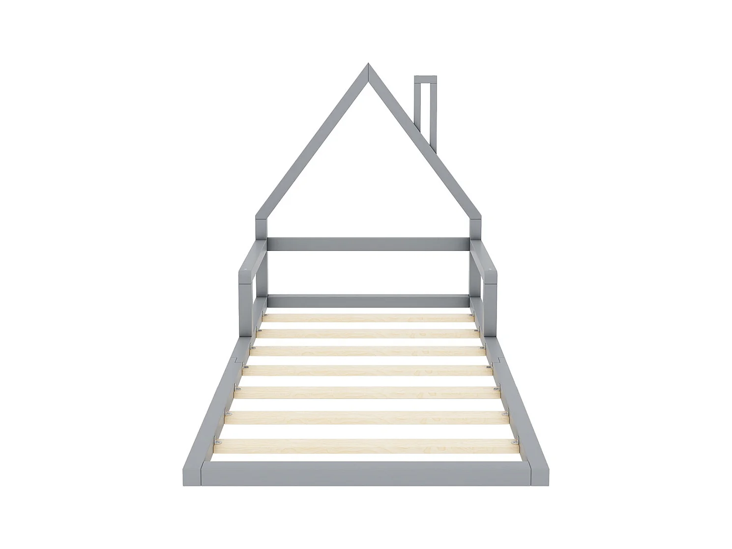 90*200cm Lit d'enfant, lit plat, forme maison, pin massif, forme simple, gris