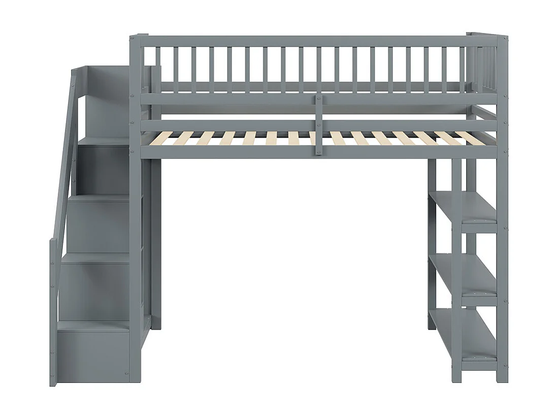 Lit jeune lit 90x200 cm lit superposé avec armoire et étagères lit simple pin gris