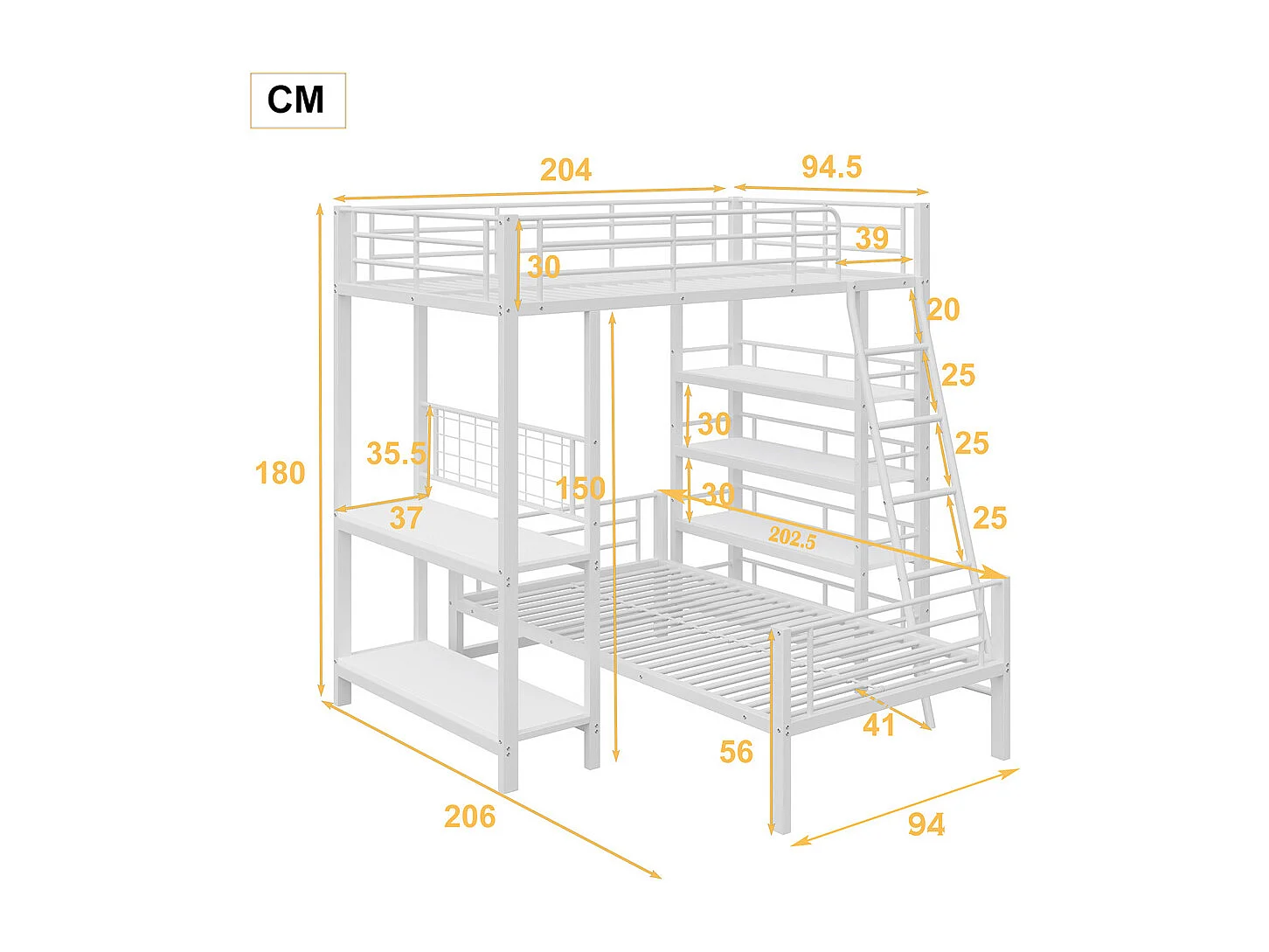 Lit jeune lit 90x200cm lit superposé avec compartiments de rangement métal blanc