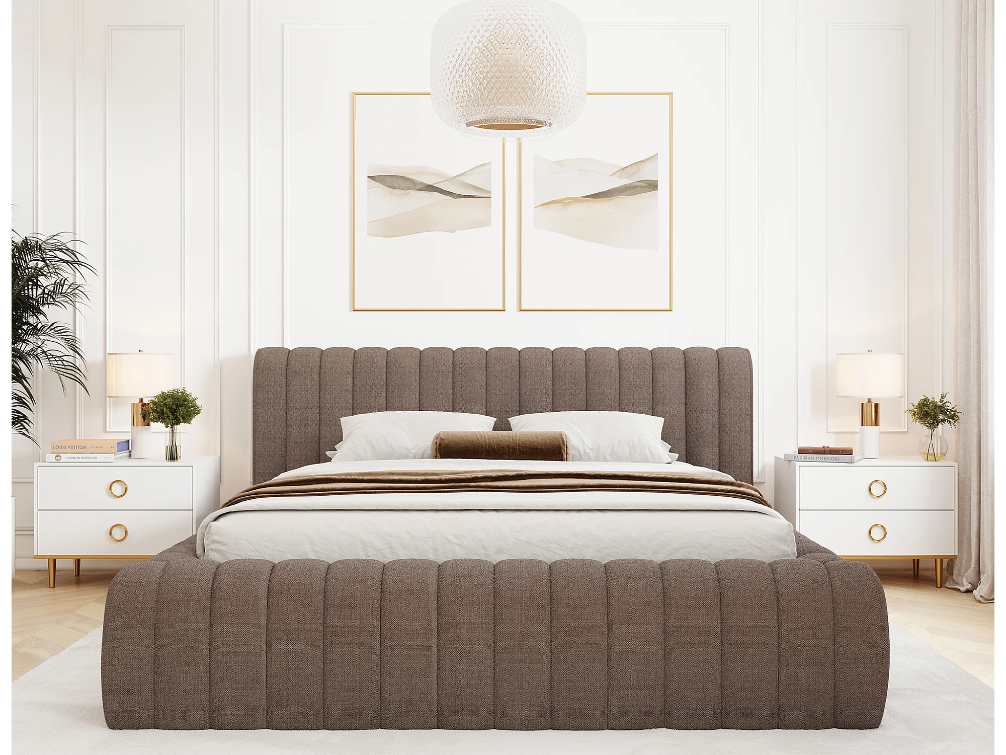 Lit coffre Madera prestige – Revêtement tissu tapissé-Couleur Marron-140x200