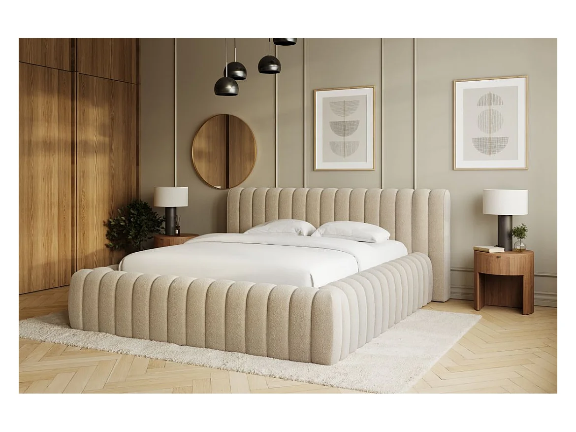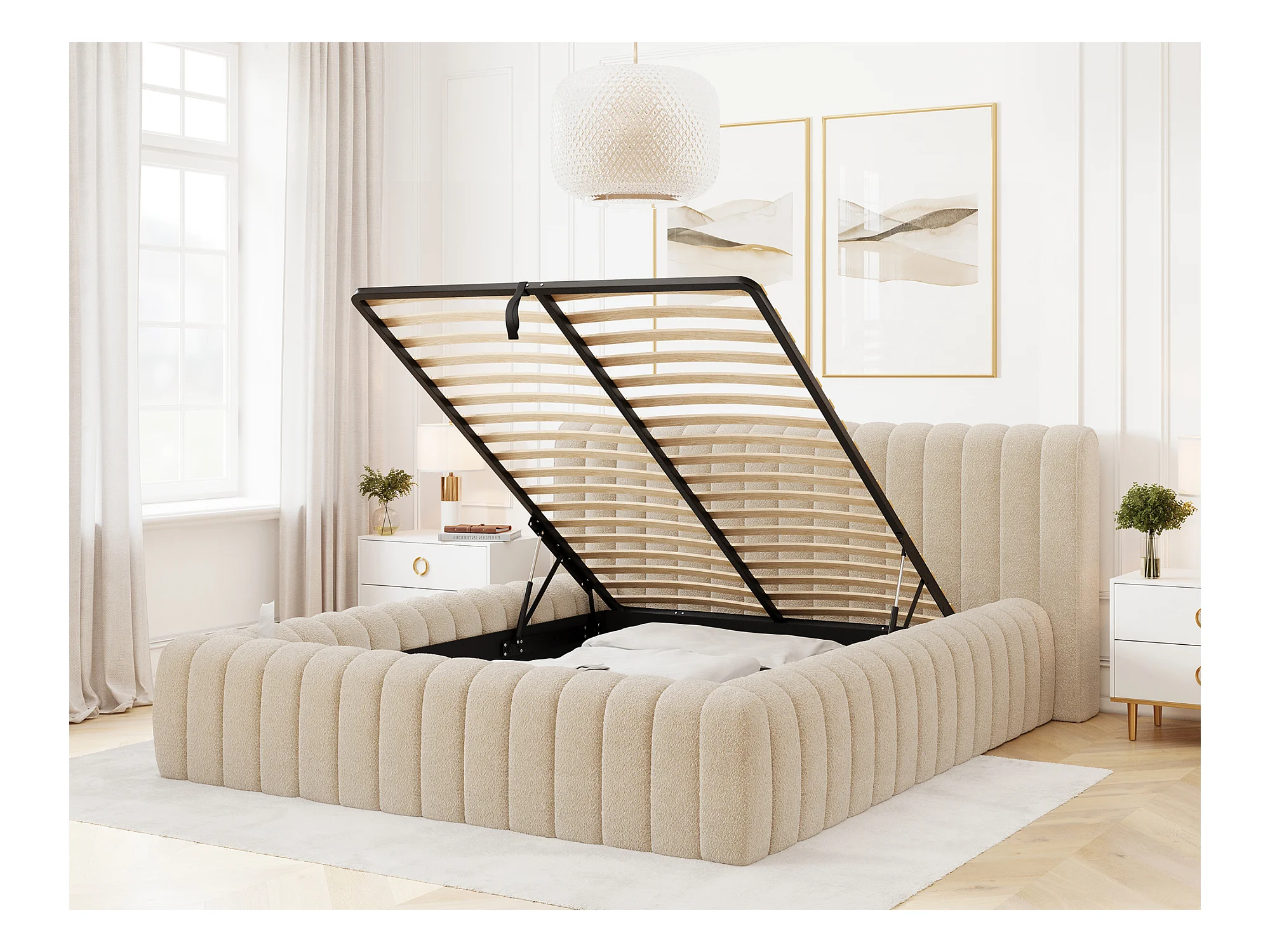 Lit coffre Madera prestige – Revêtement tissu tapissé-Couleur Beige-160x200