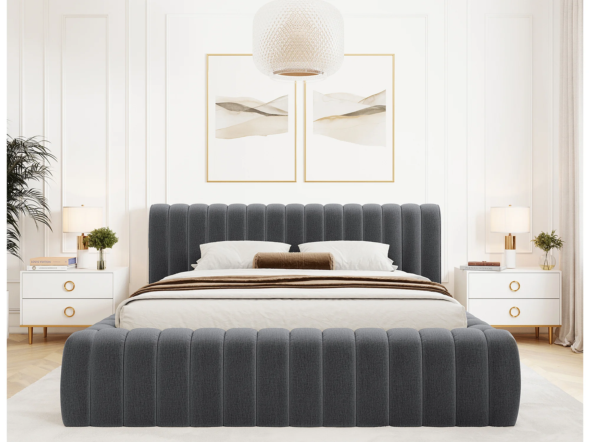Lit coffre Madera prestige – Revêtement tissu tapissé-Couleur Gris foncé-160x200